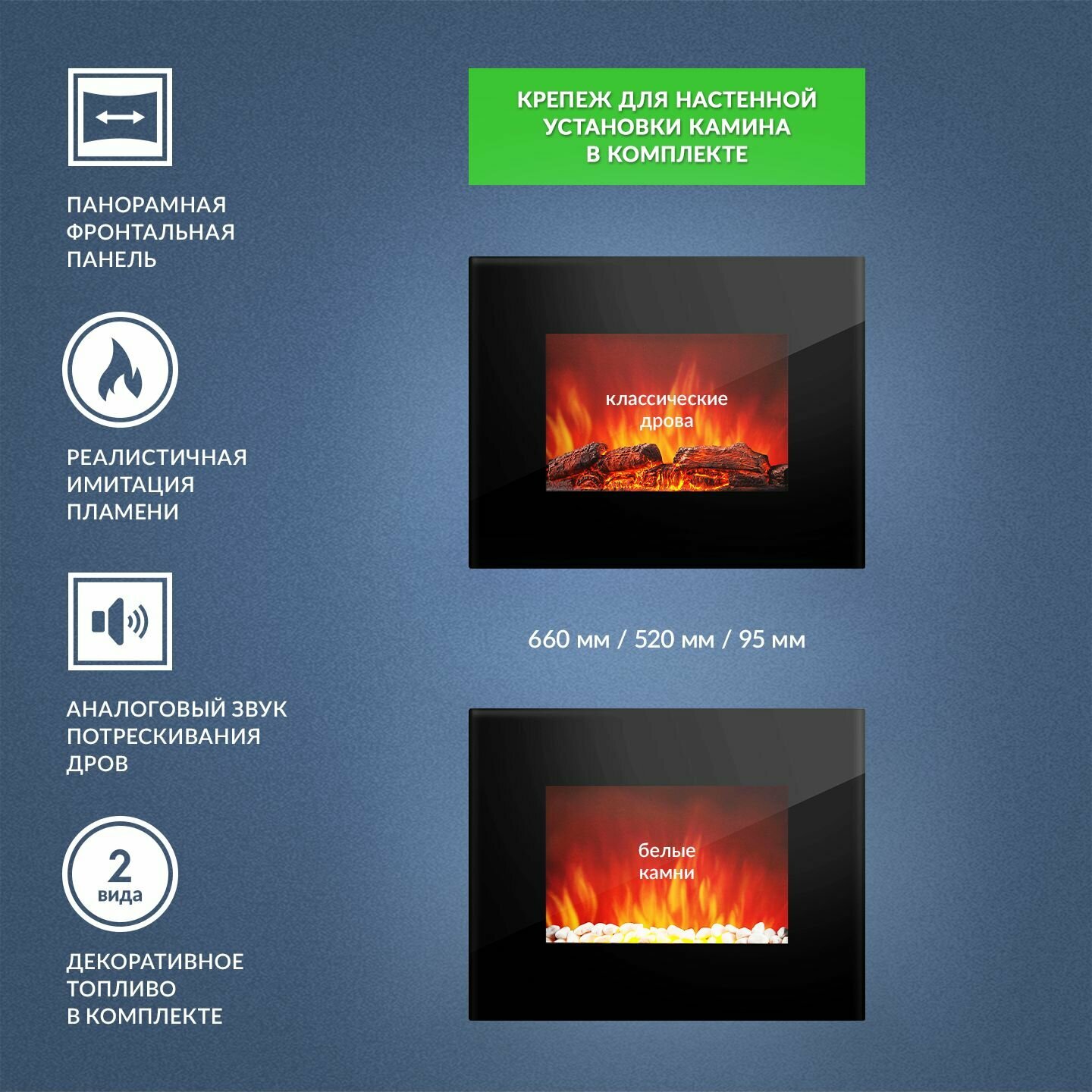 | Комплект поставки | Крепежный кронштейн. Комплект крепежей. Инструкция. 2 вида декоративного топлива (дрова/камни). Пульт ДУ. |