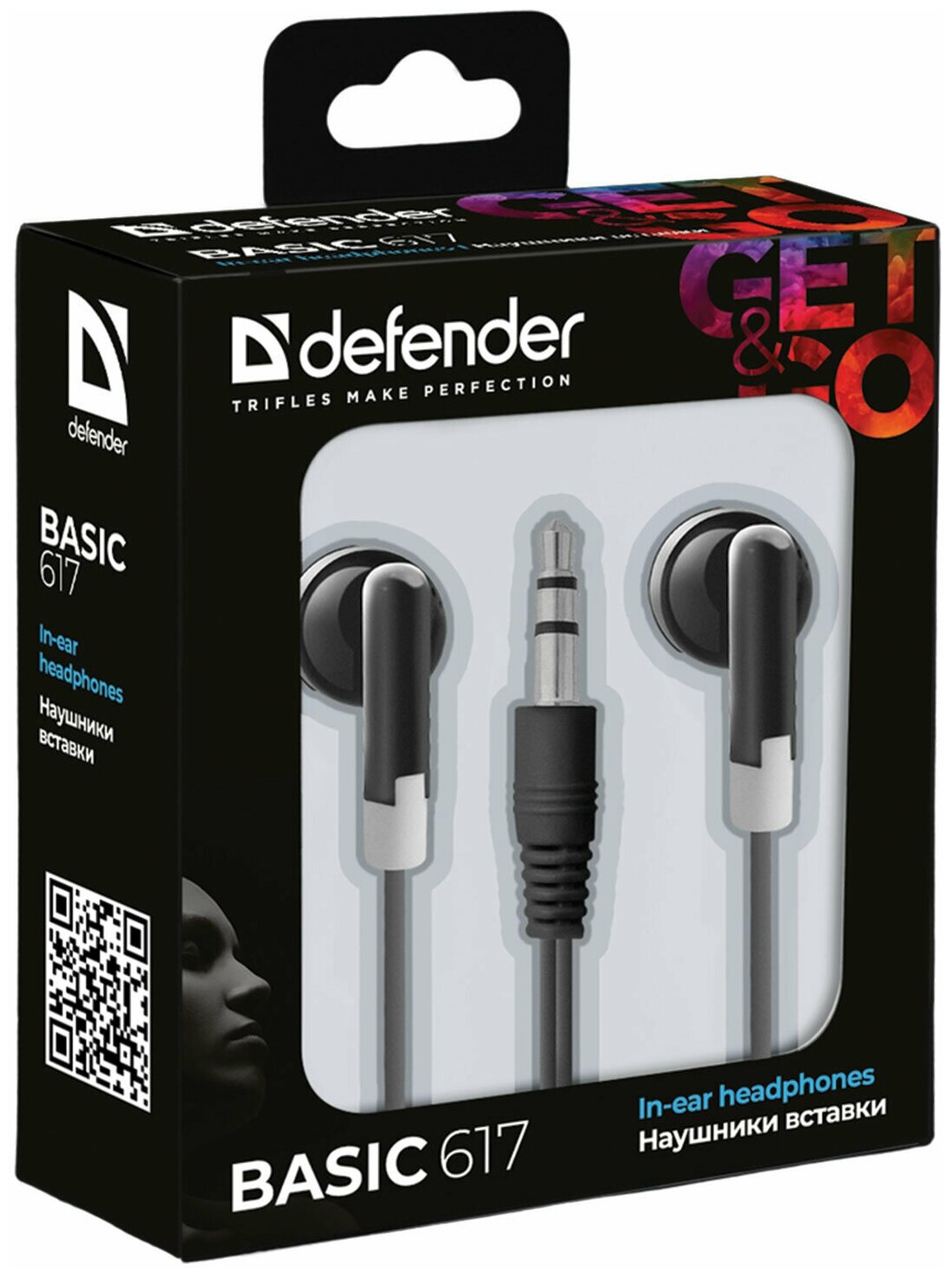 Наушники DEFENDER #1 Basic 617 комплект 5 шт проводные 11 м вкладыши черные 63617 Basic-617