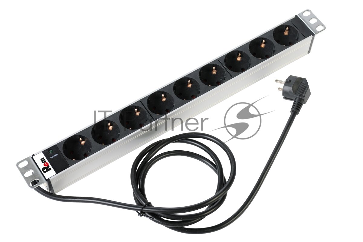 Блок розеток Rem-16 с инд. 9 Schuko 16 A алюм. 19" шнур 3 м ЦМО R-16-9S-I-440-3