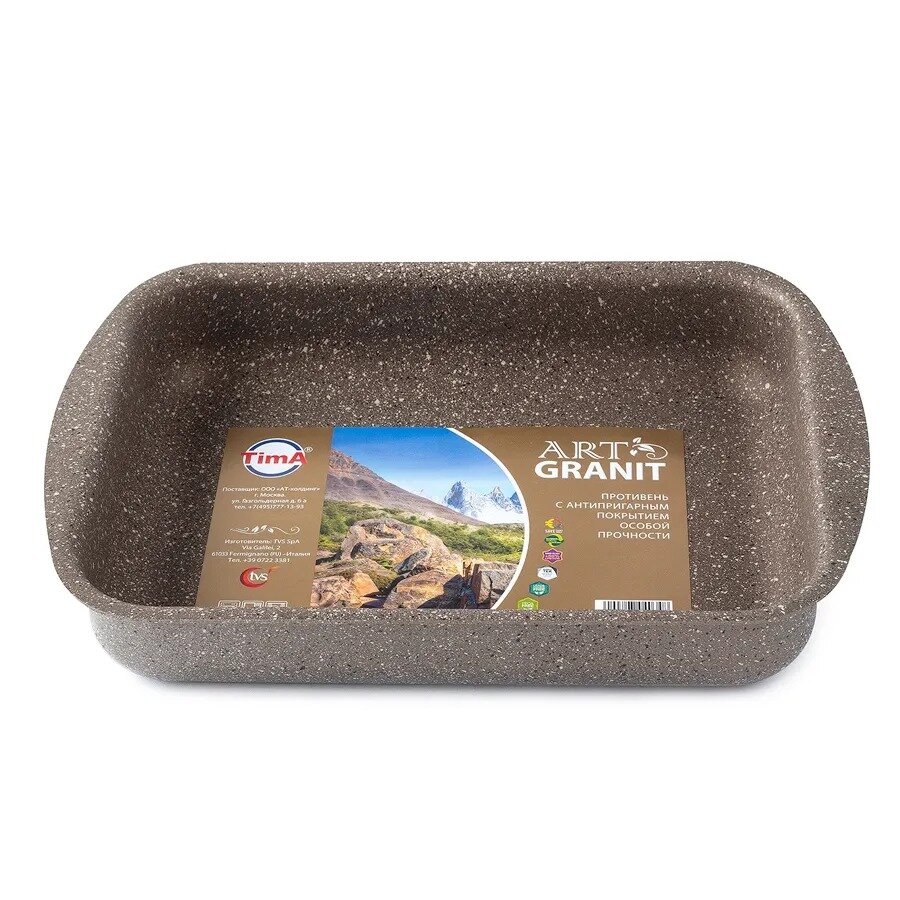 | Прочие особенности и свойства | Противень с гранитным антипригарным покрытием DURIT Select Pro (ILAG, Швейцария) серии ART GRANIT. Семислойное сверхпрочное антипригарное покрытие DURIT Select Pro состоит из нескольких слоев каменной крошки на основе минеральных компонентов. Высокая устойчивость к износу и невероятная долговечность покрытия позволяют использование металлических предметов и обеспечивают стойкость к химическим воздействиям. Не требует специального ухода. Можно мыть в посудомоечной машине. Предназначен для приготовления блюд в духовке. |