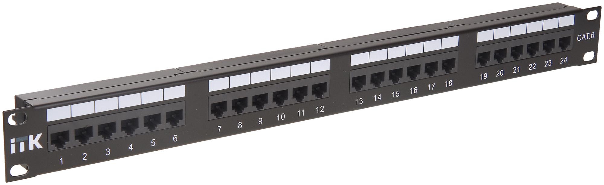 Патч-панель в шкаф 19" 1U порты: 24 x RJ-45 кат. 6 черный ITK (PP24-1UC6U-D05)