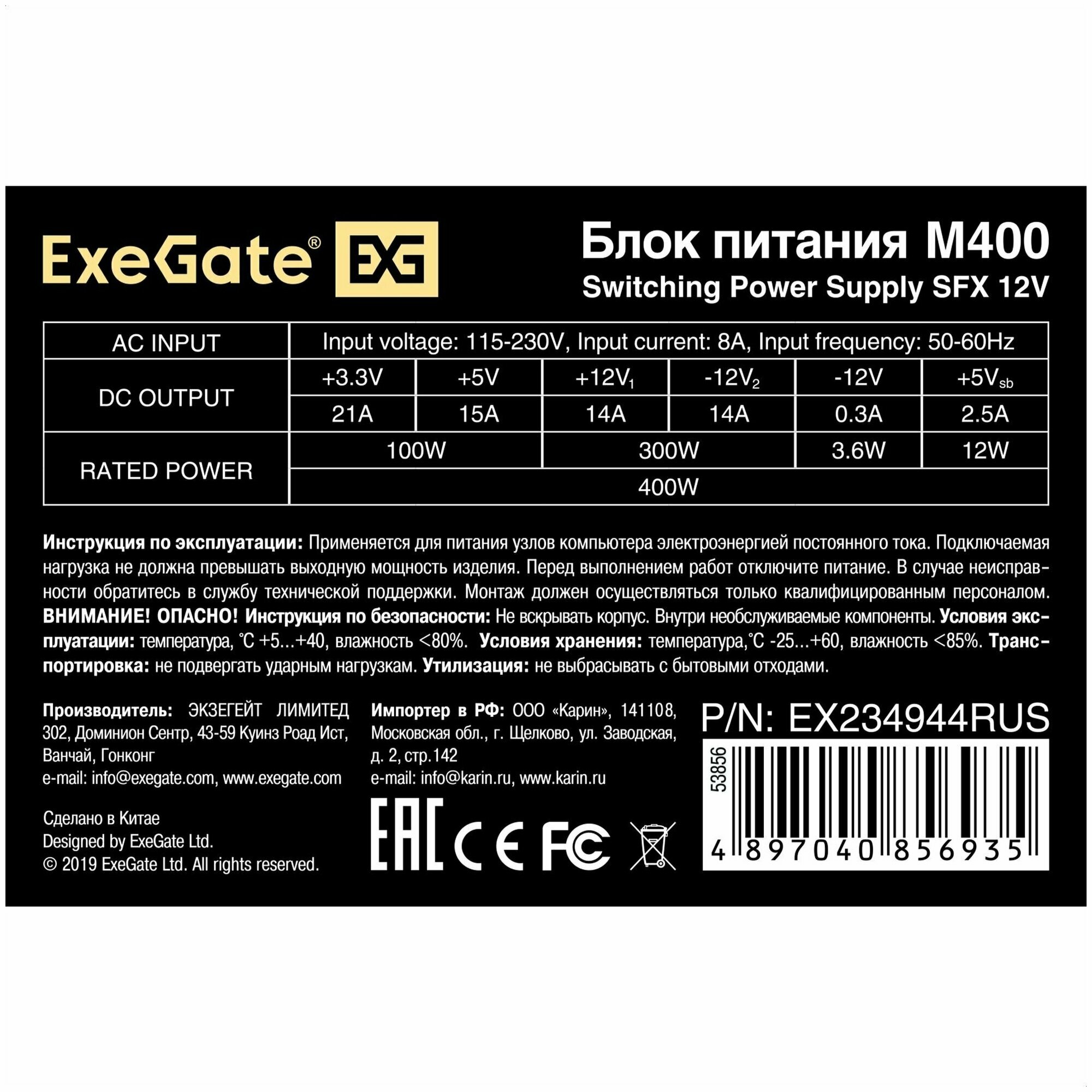 БП ITX 400 Вт Exegate EX234944RUS M400