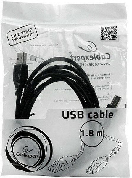 Gembird Cablexpert USB 2.0 Pro AM/BM 1.8m Black CCF-USB2-AMBM-6 предназначена для подключения компьютера стандарта USB/BM: принтеру, сканеру, МФУ. Поддерживает передачу цифровых данных в соответствии с протоколом USB 1.1/2.0 обладающий пропускной способностью интерфейса достигающей 480 Мбит/с. Внешняя изоляция кабеля изготовлена из гибкого PVC, позволит защитить сигнал при передаче от влияния внешних полей, способных создать помехи. Никелированные контакты, медь обеспечат высокое качество соединения, и передачи данных без каких-либо искажений.