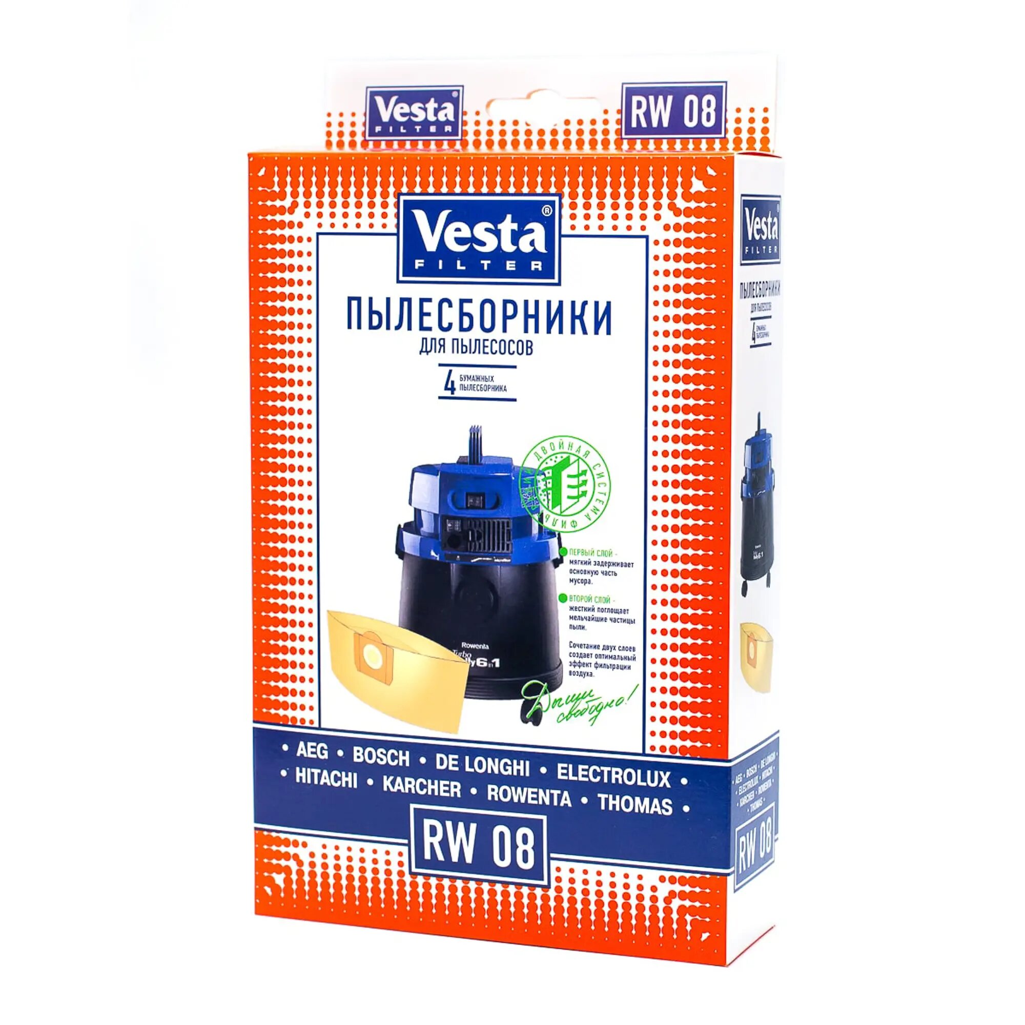 Vesta filter Бумажные пылесборники RW 08 бежевый 4 шт.