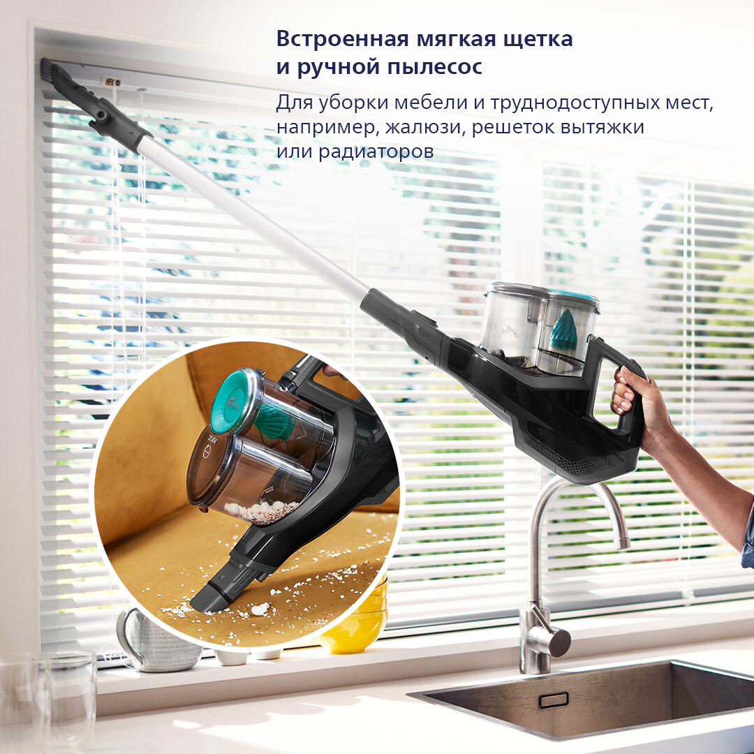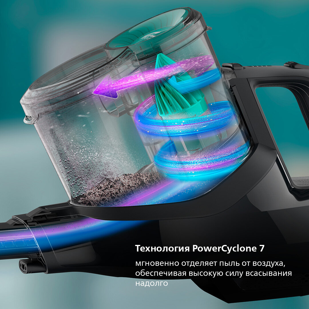 Технология PowerCyclone 7 мгновенно отделяет пыль от воздуха, что позволяет дольше сохранять высокую эффективность.