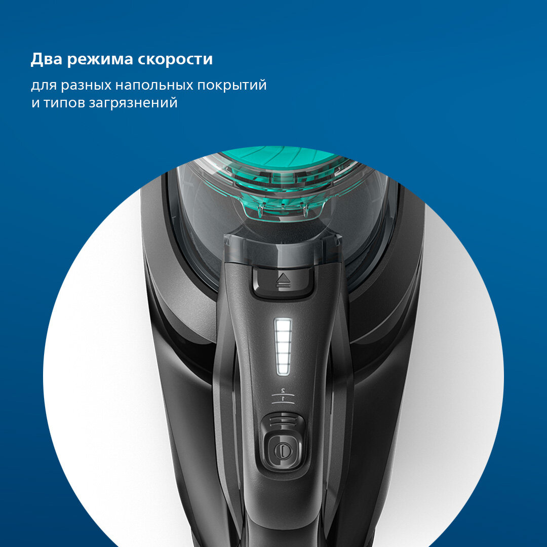 Новый беспроводной пылесос SpeedPro обеспечивает быструю уборку и отменную маневренность. Он оснащен насадкой с системой всасывания 180° для точного сбора грязи даже в самых сложных местах — у стен, вокруг мебели и в углах.