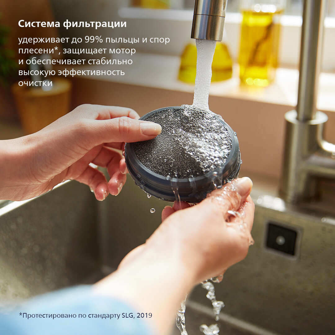Система фильтрации удерживает до 99 % пыльцы и спор плесени, возвращая к мотору чистый воздух, а также обеспечивая быстрый воздухопоток и стабильно высокую эффективность.