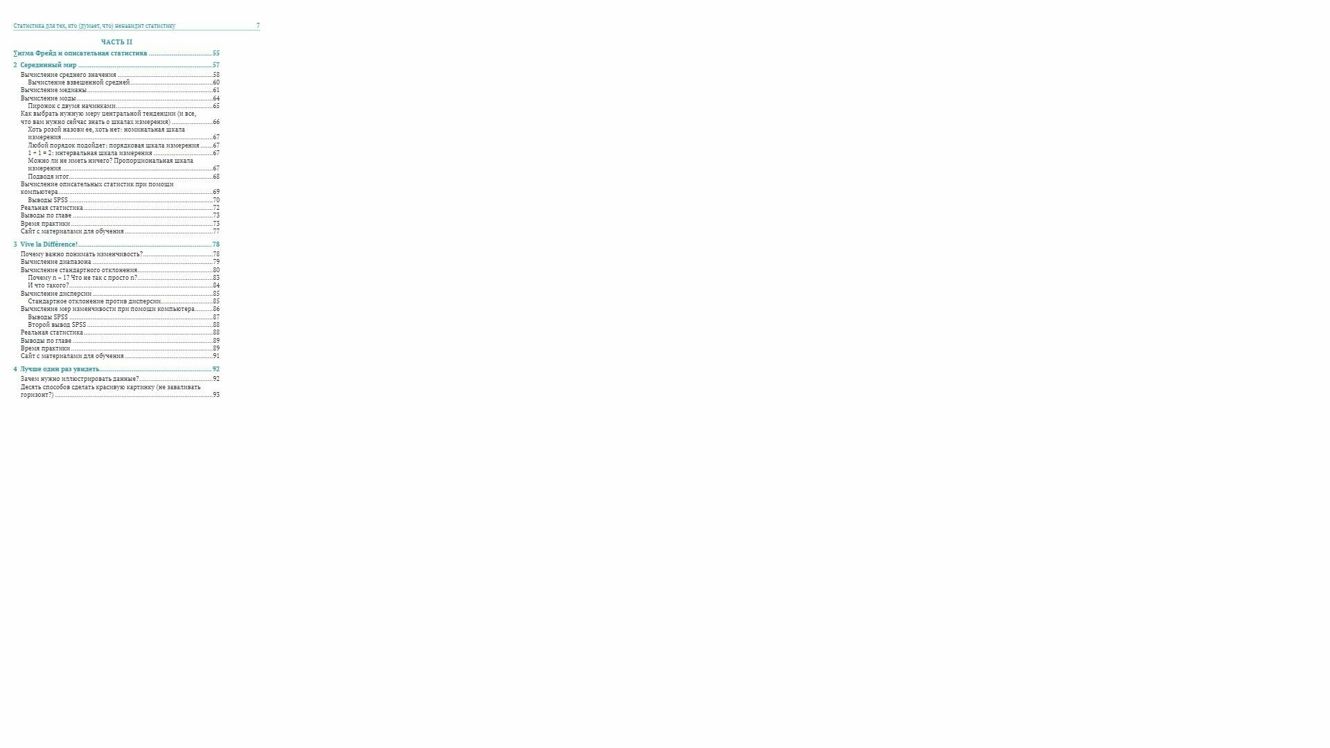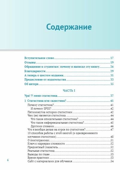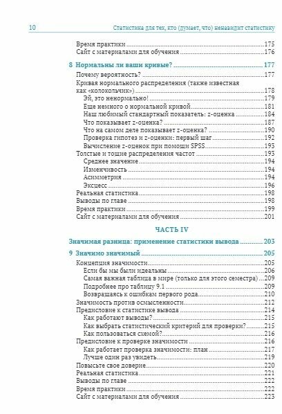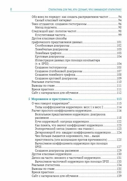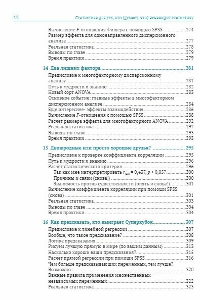 Однако Нил Салкинд в результате множества проб и ошибок, а также учитывая многочисленные отзывы читателей, выпустил уже 6-е издание книги с целью научить статистике так, чтобы эта наука перестала пугать и стала для вас полезной! Вы узнаете все необходимое, чтобы понять, чем занимается и что изучает базовая статистика. В книге совсем немного теории (но кое-какая имеется) и доказательств. После прочтения вы сможете понять материал в научных статьях, интерпретировать результаты статистического анализа, а также выполнять основные статистические операции.