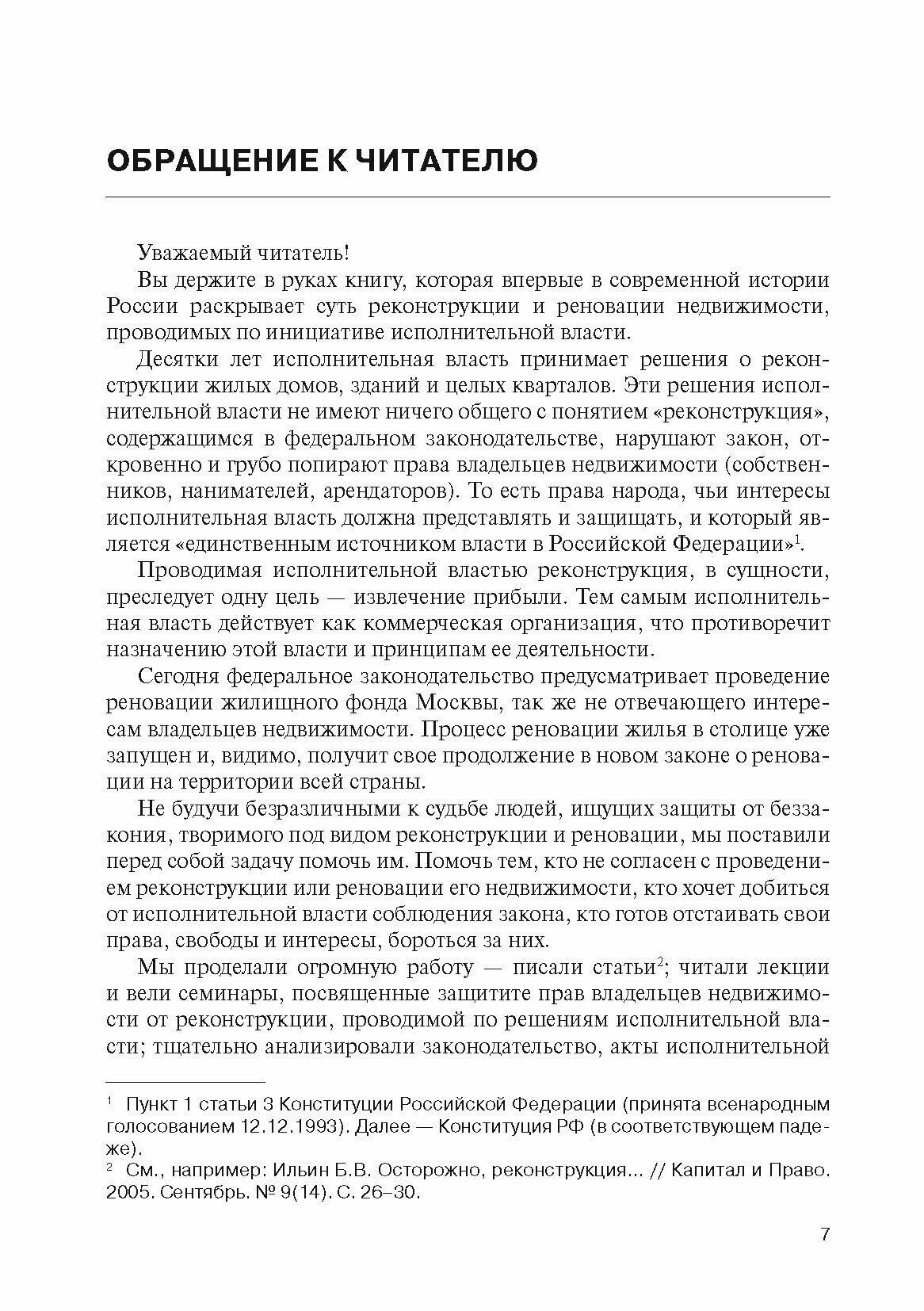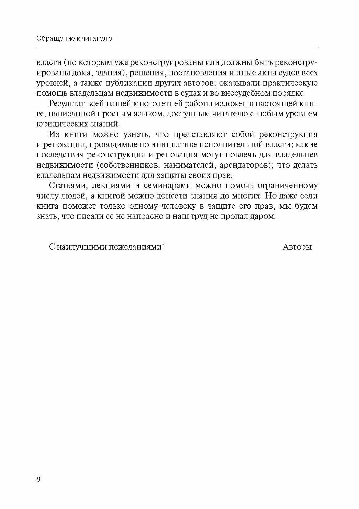 В предлагаемой вниманию читателя книге открыто и правдиво рассказано о реконструкции и реновации недвижимости, которые проводятся по инициативе исполнительной власти. Простым и доступным языком говорится о том, как защищать права собственников, нанимателей и арендаторов недвижимости от незаконной реконструкции (реновации).