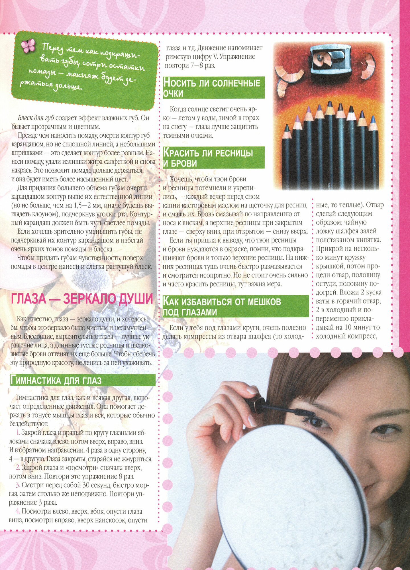 Дальше пара десятков страниц о коже и масках для лица, и вот на 21 речь пошла о косметике. Зачем ребенку декоративная косметика?