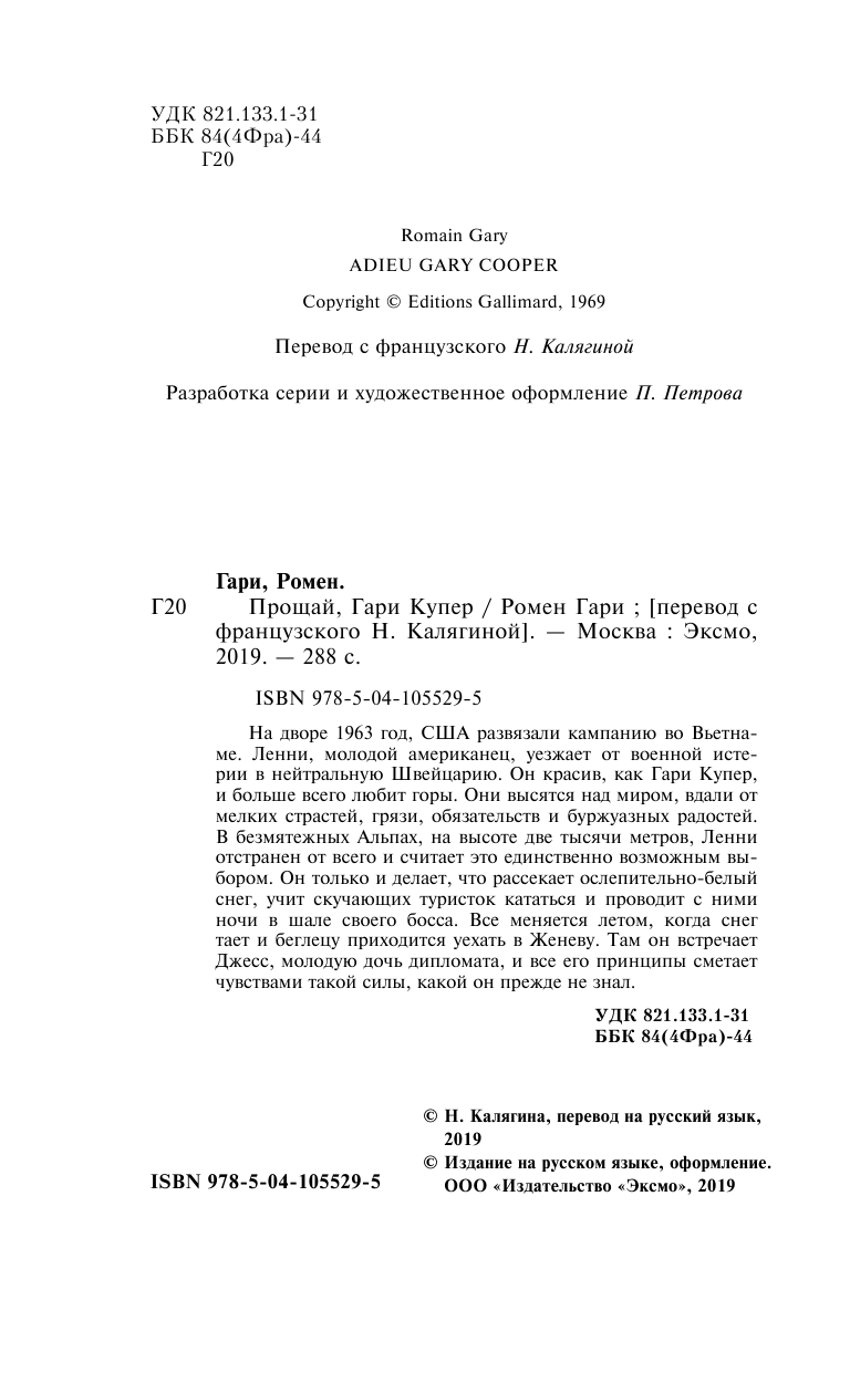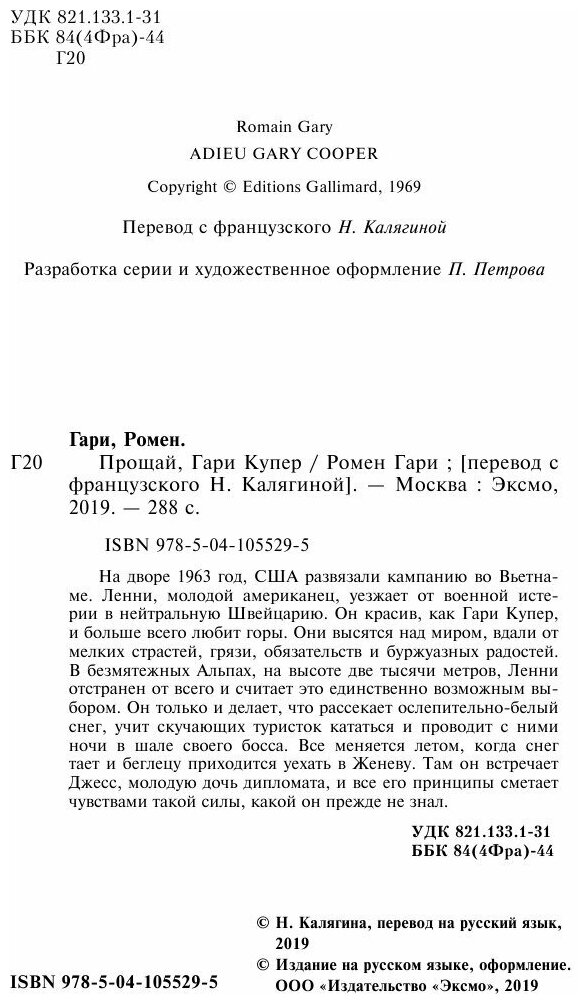 Книга: Прощай Гари Купер (Ромен Гари); Эксмо, Редакция 1, 2019