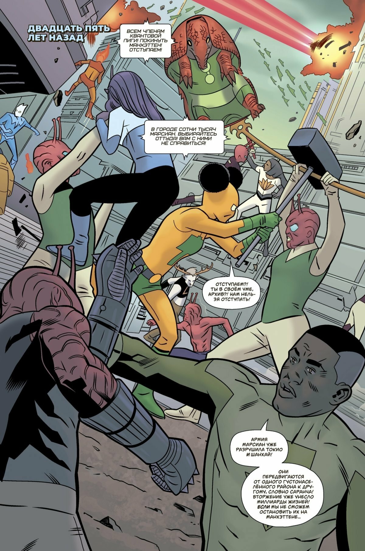 Юный марсианин должен найти способ возродить Квантовую лигу, чтобы спасти мир, попутно разгадывая тайну исчезновения величайших героев двадцатого века. Создатель "Чёрного Молота" Джефф Лемир ("Гидеон Фолз") взял в художники для этого комикса Уилфредо Торреса ("Легион"), а Дэйв Стюарт ("Хеллбой") добавил цвета их работе. В сборник вошли выпуски #1?;6 серии "Квантовая эра", материалы со Дня бесплатных комиксов - 2018, а также галерея набросков и все обложки серии!