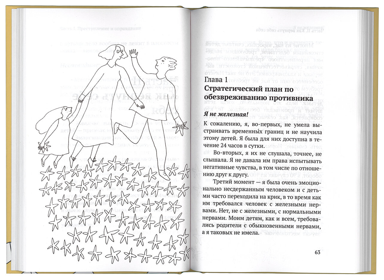Прочитала книгу. Мне очень понравилась. Прочитав, убедилась, что если не нравится мир вокруг, начни меняться сам. Конечно книгу будут покупать именно родители с детьми. Ведь само название говорит об этом. У меня , вроде, проблем с детьми, которые меня раздражают и злят, нет. Но...в книге есть пошаговая инструкция по изменению себя. Это настоящий психологический практикум. И я использовала эту инструкцию. Мой маркер был - страх. Страх быть дома рядом с человеком , от которого не знаешь чего ждать.