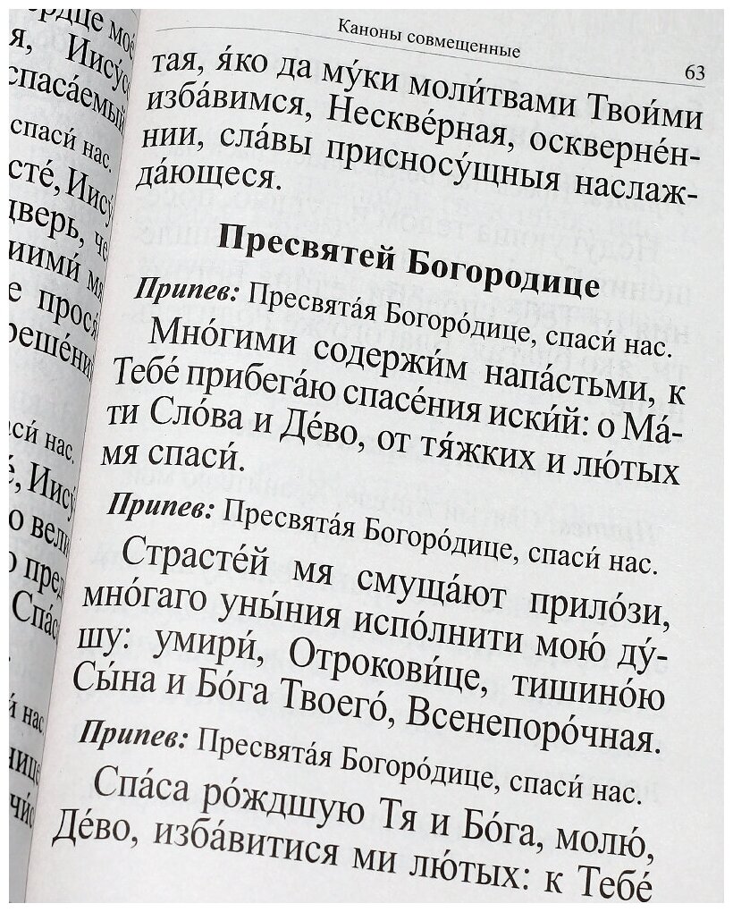 В "Молитвослов", напечатанный крупным шрифтом, вошли "Молитвы утренние" и "Молитвы на сон гдядущим", а также "Последование ко Святому Причащению", молитвы и каноны, необходимые для подготовки к Святому Таинству, и "Благодарственные молитвы по Святом Причащении".