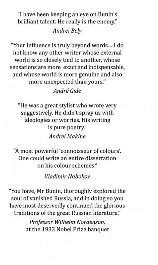 Покупала книгу из любопытства - посмотреть, как же переводят нашу классику, написанную на великом и могучем, на английский язык. Ведь для этого нужно русские корни произведений Бунина каким-то образом пересадить на чужеземную почву - мне казалось это крайне сложным (если не невозможным). Однако перевод сборника "Темные аллеи" приятно удивил. Как-то вот удалось Хью Аплину передать и русский дух, и неповторимый лиризм Бунина.