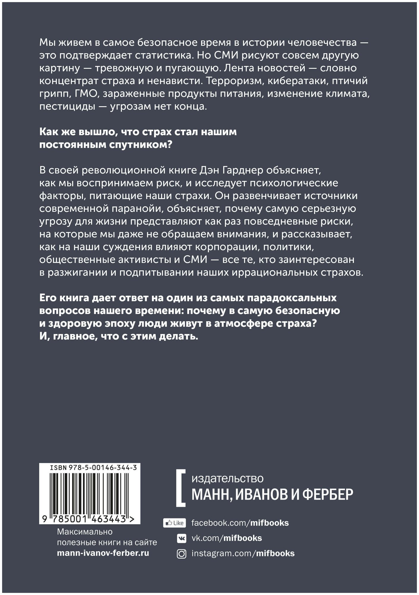 Страх. Почему мы неправильно оцениваем риски живя в самое безопасное время в истории (Гарднер Дэн); Манн, Иванов и Фербер, 2019