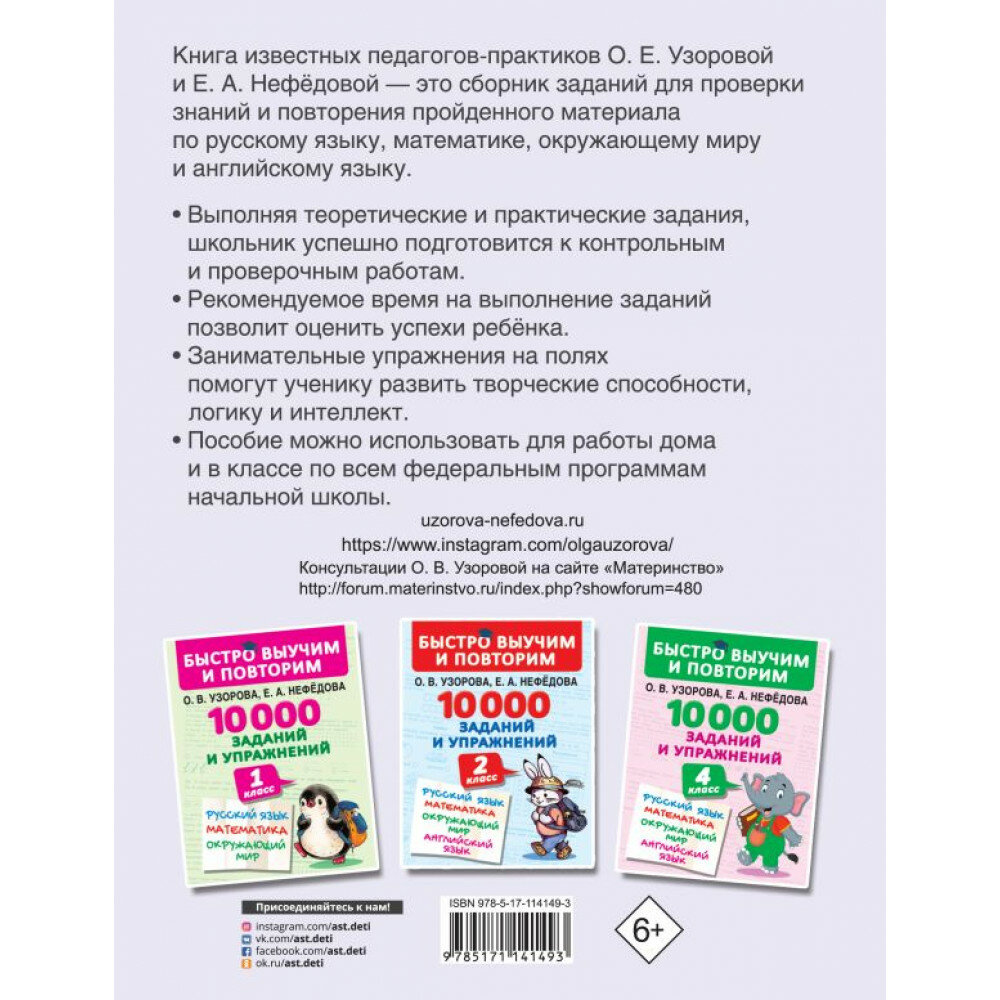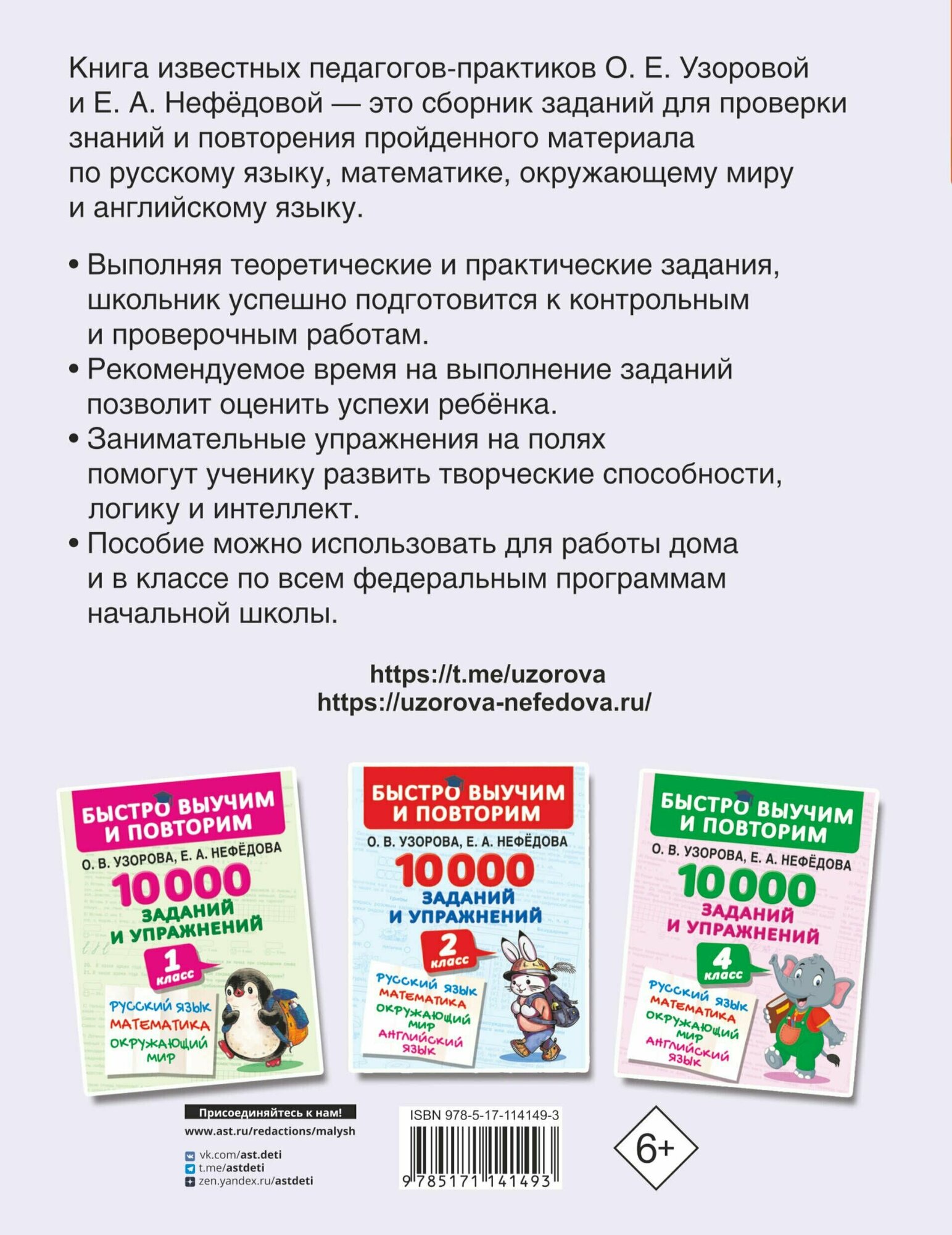10000 заданий и упражнений. 3 класс. Математика Русский язык Окружающий мир Английский язык (Нефедова Елена Алексеевна, Узорова Ольга Васильевна); Сова. Малыш (Обучающая и развивающая литература), 2022