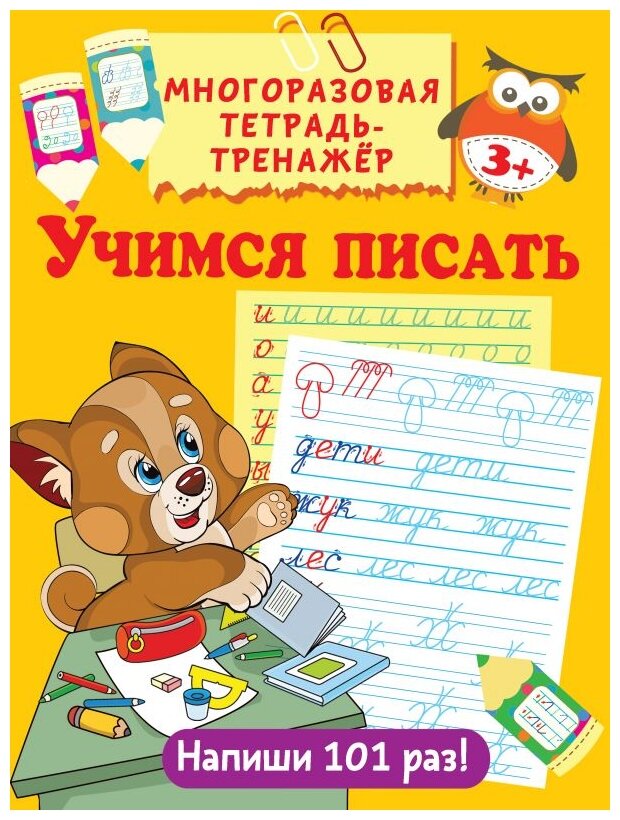 "Учимся писать" - многоразовая рабочая тетрадь для будущего первоклассника. Предложите малышу маркером на водной основе обводить фигуры, элементы, буквы. Малыш научится правильно и аккуратно писать буквы и слова, не боясь ошибиться - любую ошибку можно легко исправить!