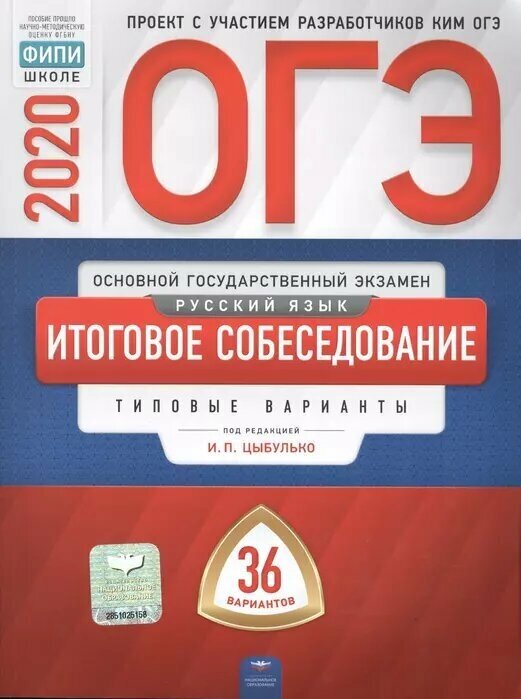 ОГЭ-2020. Русский язык. Итоговое собеседование: типовые варианты: 36 вариантов (Цыбулько Ирина Петровна, Малышева Т. Н.); Национальное образование, 2019