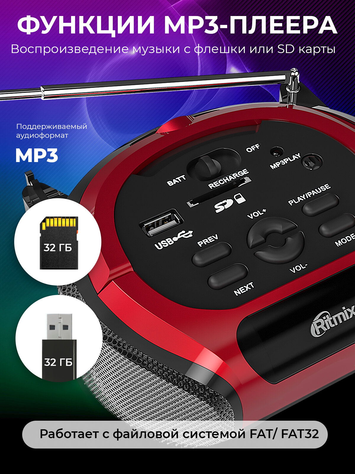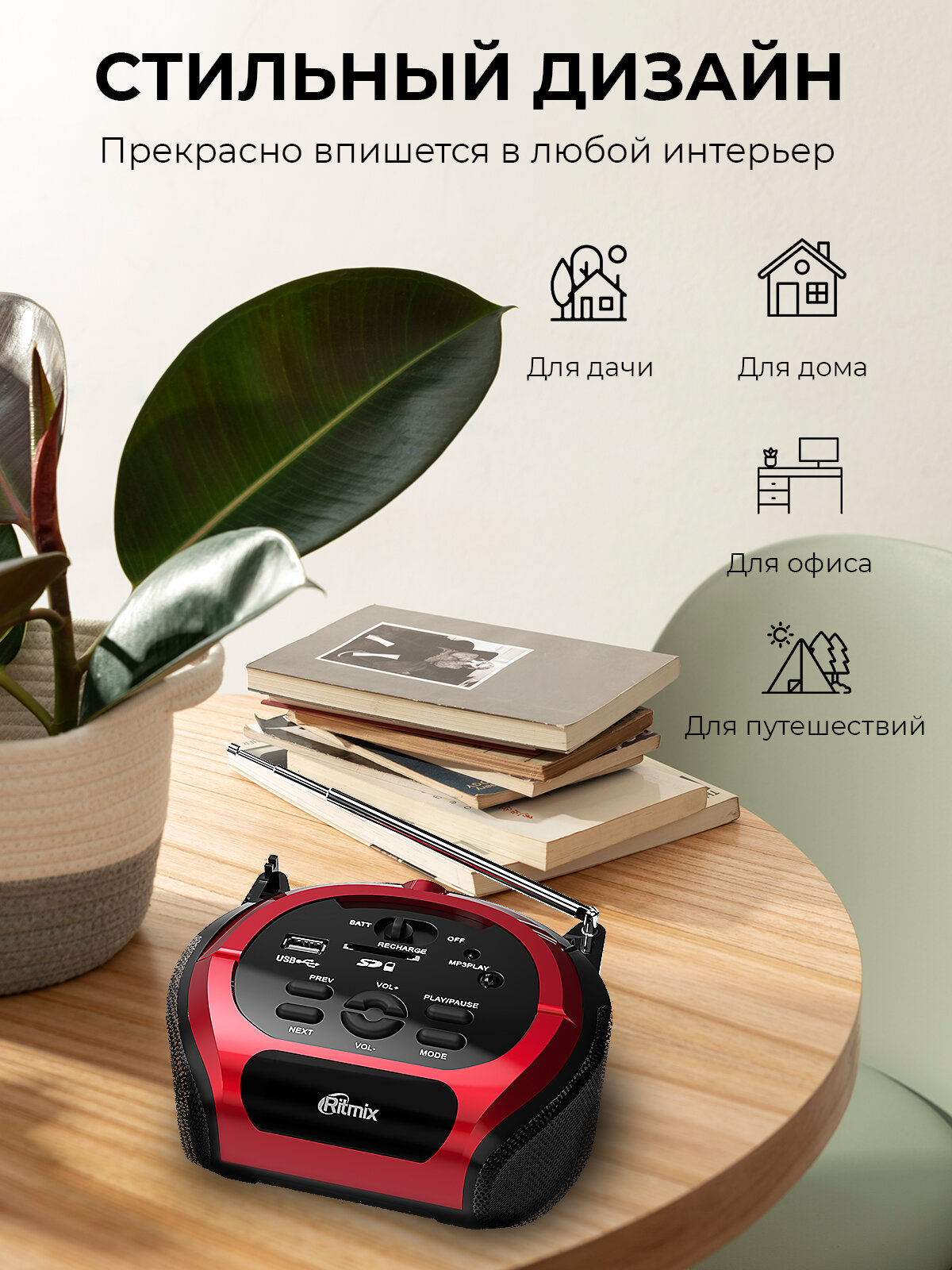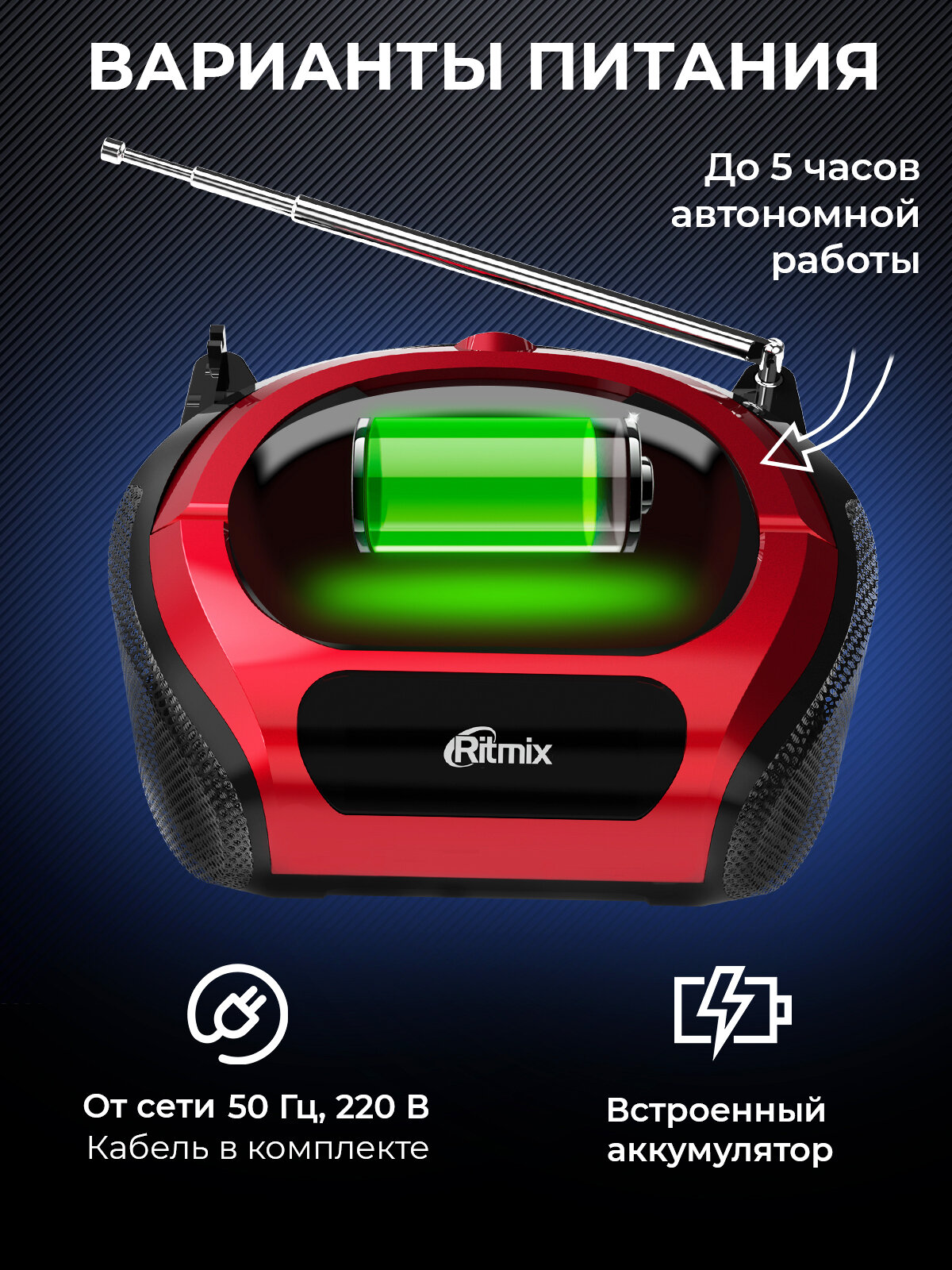 Магнитола Ritmix RBB-100BT Black/Red – современная модель, представленная в черно-красном корпусе из пластика. Она отличается стильным дизайном и компактными размерами, что делает ее удобной в использовании.