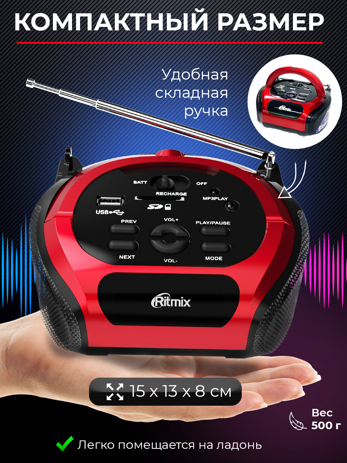 Сервис сравнения цен СкидкаГИД предлагает сравнить цены на товар «Магнитола Ritmix RBB-100BT Red/Black»