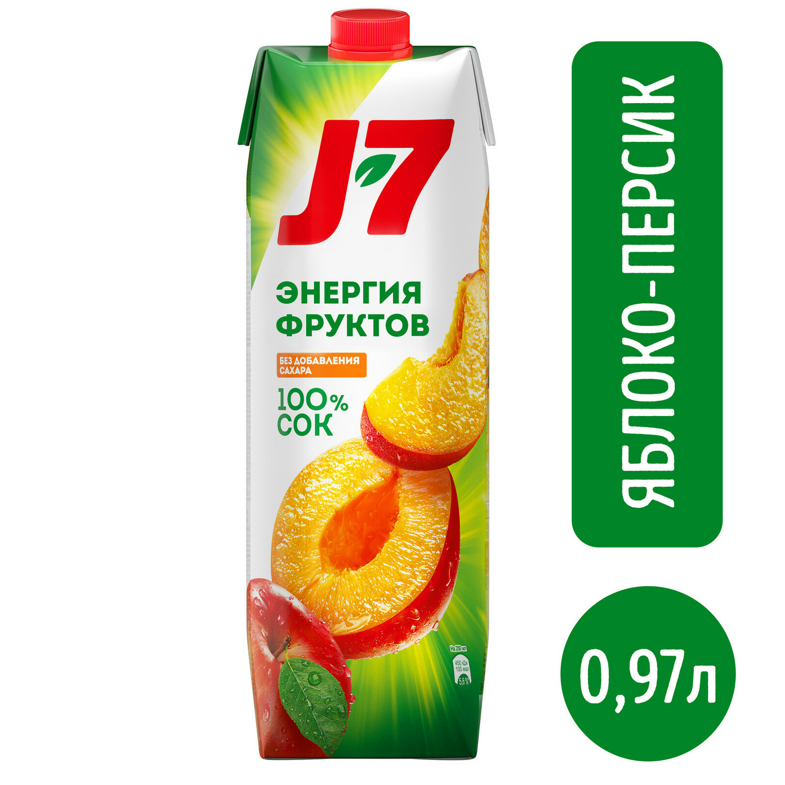 Сок J-7 Яблоко Персик с мякотью 970мл