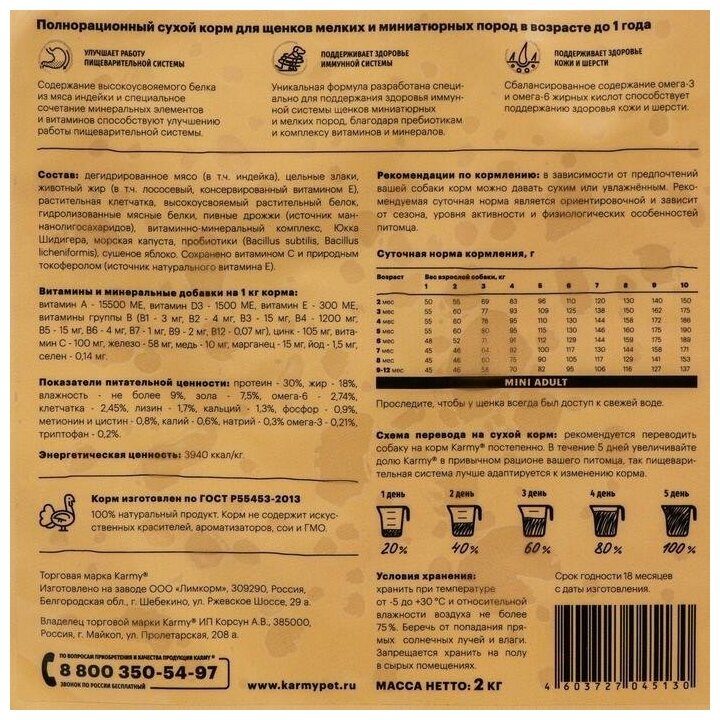 Сервис сравнения цен СкидкаГИД предлагает сравнить цены на товар «Сухой корм для щенков Karmy с индейкой для маленьких пород 2 кг»