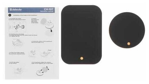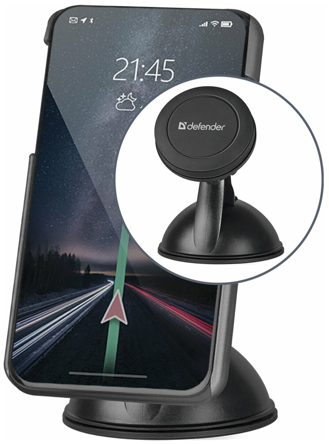 Держатель для телефона автомобильный магнитный Defender CH-107 для телефона, черный, магнит, на стекло: Надежно фиксируется на лобовом стекле (или любой гладкой поверхности) с помощью вакуумной присоски. Компактный, удобный, прост в использовании. Подходит для телефона, смартфона, навигатора. Позволяет поворачивать прикрепленное устройство на 360°. Обеспечивает комфорт при работе с портативной техникой. Удобный доступ к разъемам. Удобен при использовании смартфона в чехле. Простой алгоритм установки/снятия мобильного устройства.