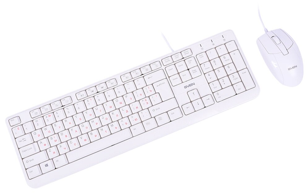 Sven KB-S330C набор клавиатура + мышь. Классическая проводная клавиатура, способная удовлетворить потребности рядового пользователя. Рассматриваемая модель подключается к персональному компьютеру при помощи интерфейса USB. За счет специальных ножек осуществляется регулировка угла наклона. Клавиатура обладает британской раскладкой клавиш («Enter» занимает два ряда клавиатуры, а в основном ряду на одну клавишу больше). Цифровой блок и светодиодные индикаторы "CapsLock", "NumLock", "Scroll Lock" традиционно расположились в правой части рабочего пространства. Комфортно работайте с текстом, переписывайтесь с друзьями и многое другое.
