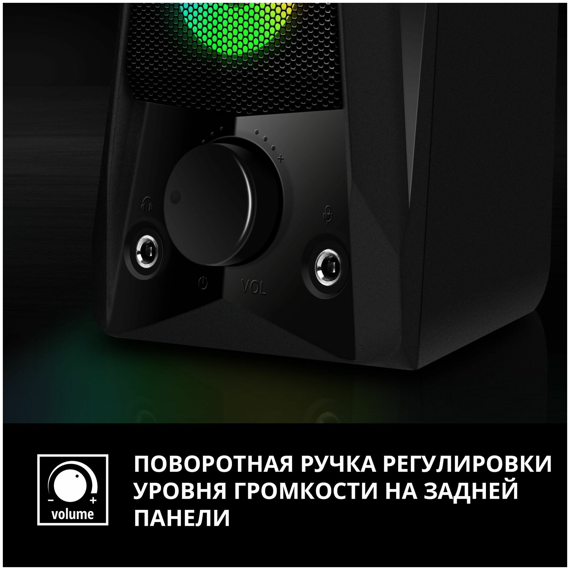 | Дополнительно | внешний регулятор громкости, сенсорная кнопка вкл/выкл подсветки динамиков |