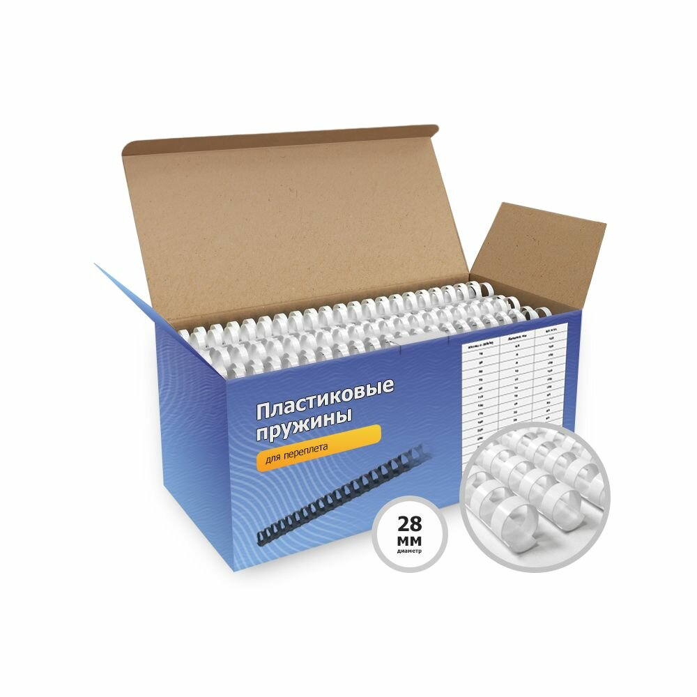 Пластиковые пружины для переплета ГЕЛЕОС 28 мм (260 листов), белые, 50 шт.
