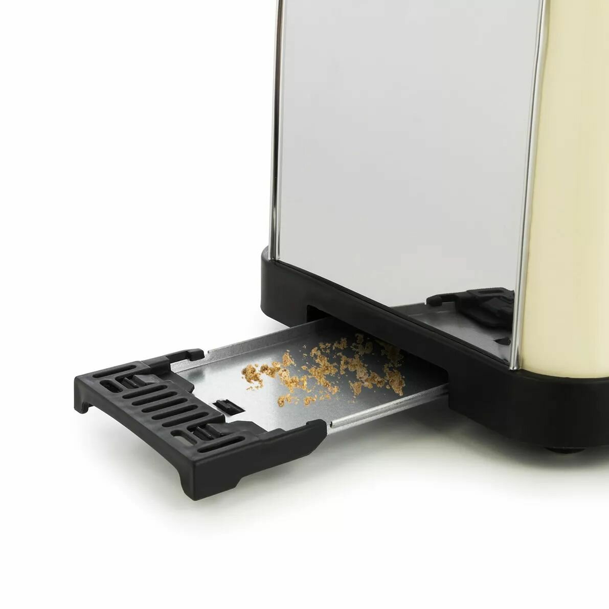 Широкие слоты с функцией экстра-подъёмадля удобного извлечения маленьких тостов. Также тостер оснащён поддоном для крошек.