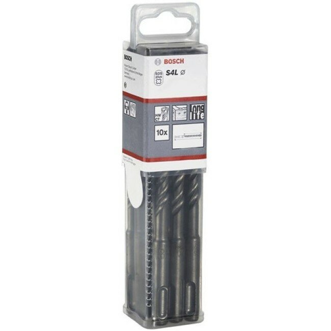 | Прочие особенности и свойства | Ударные сверла BOSCH 2608585628 предназначены для перфораторов с патроном SDS+. Спиралевидное сверло имеет усиленное поверхностное уплотнение, что позволяет выполнять отверстия с большой точностью. Трение при работе данной оснасткой минимально. Сверлильная пыль быстро отводится, делая работу наиболее комфортной. Подходит для сверления кирпичной кладки, а также армированного и неармированного бетона. В упаковке 10 штук. |