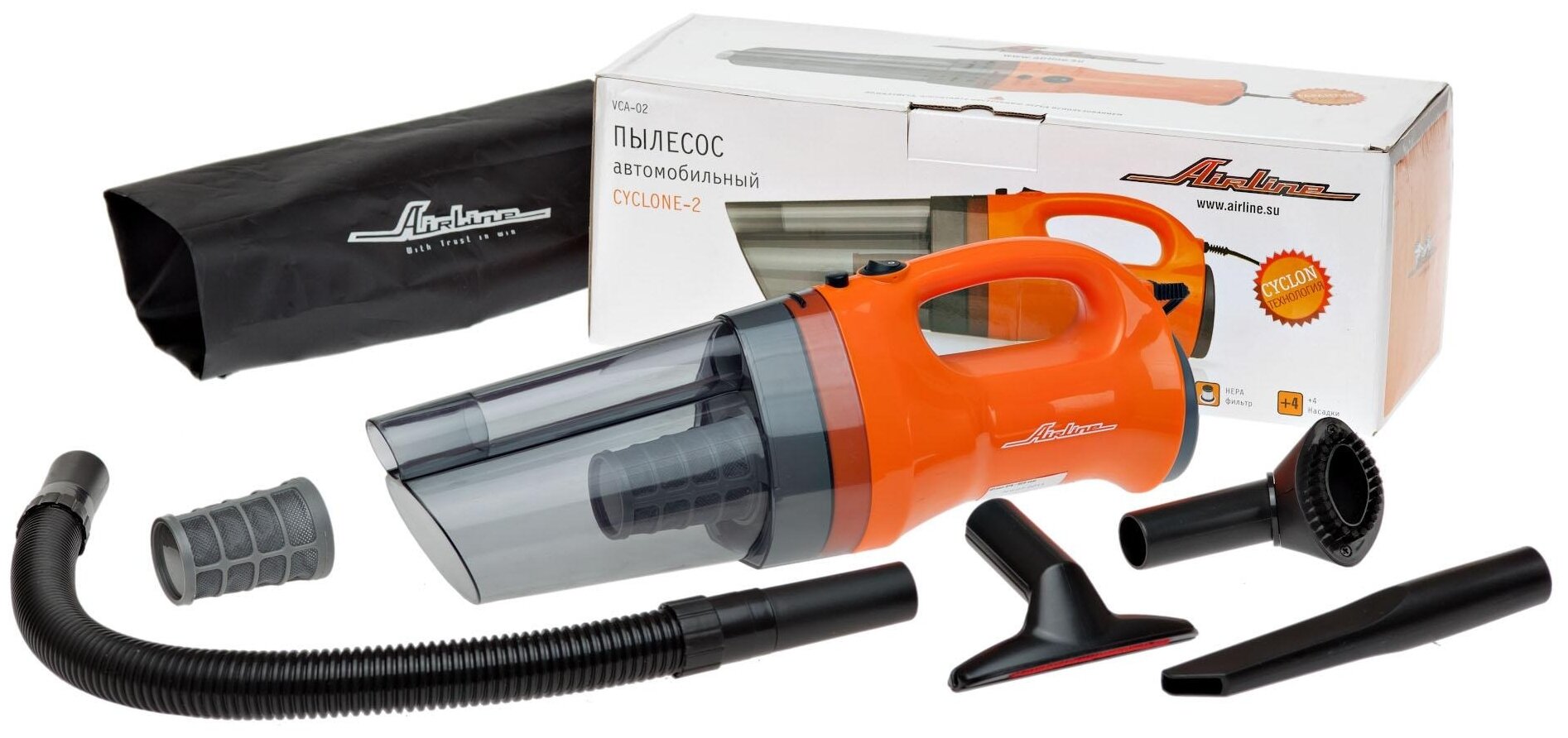 Пылесос автомобильный AIRLINE CYCLONE-2 оранжевый/черный CYCLONE-2 VCA-02
