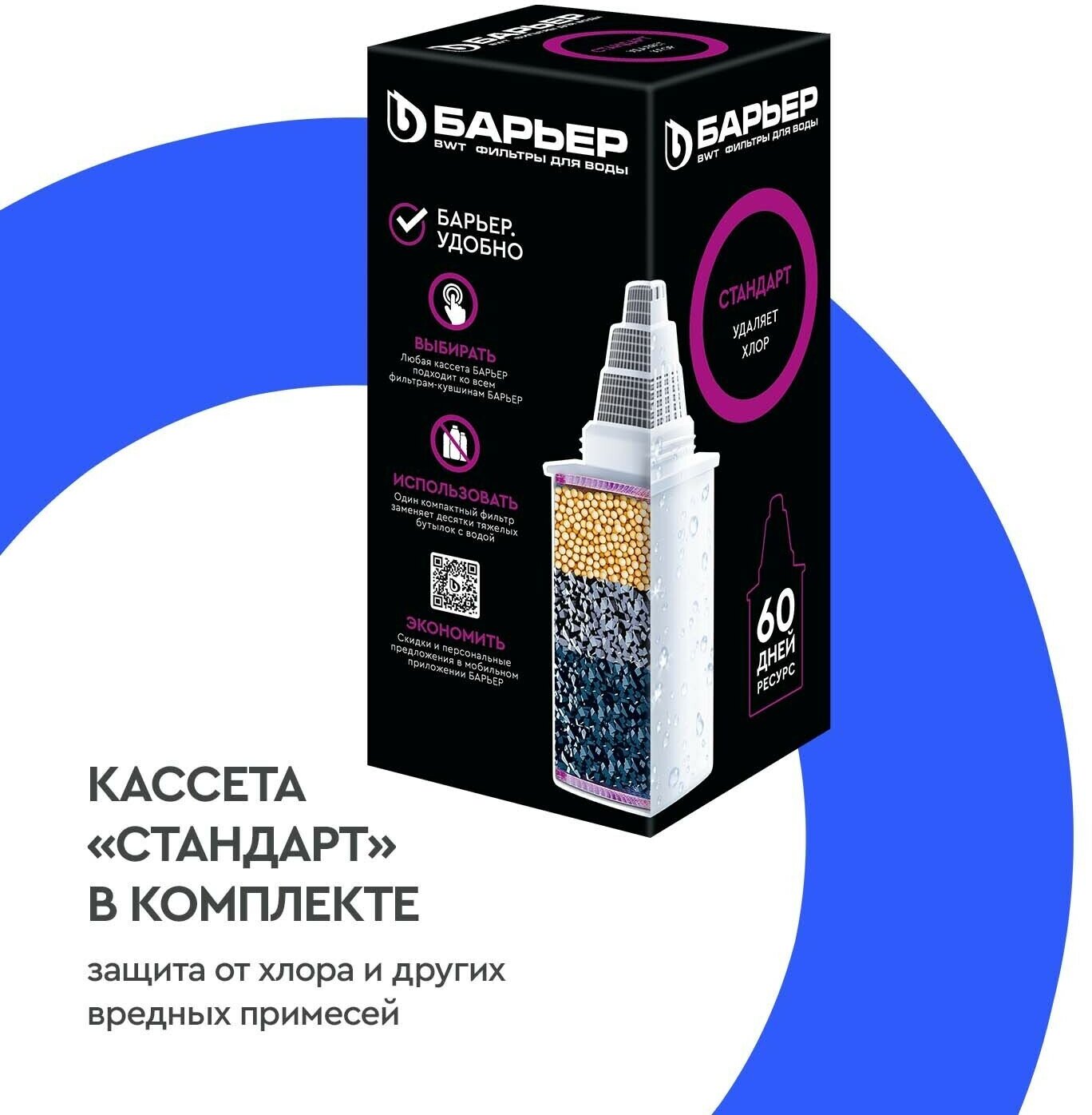 Кувшин Барьер Гранд является идеальным решением для семьи! Благодаря кассете-фильтру он способен производить качественную очистку воды, а, как известно, чистая питьевая вода крайне важна для здоровья человека. При изготовлении данного устройства были использованы безопасные материалы, рекомендованные для контакта с водой. Объем кувшина составляет 4 л. Воронка кувшина рассчитана на 1,65 л воды и обеспечивает надежную защиту отфильтрованной жидкости от пыли.