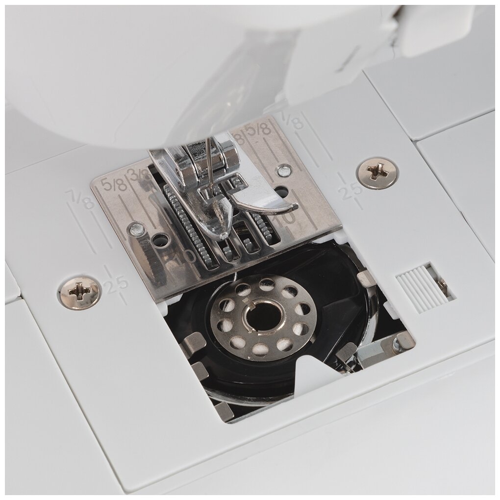 | Прочие особенности и свойства | Две скорости работы,Обработка петли для пуговиц,Удобная система заправки нити,Автоматическая намотка нити |