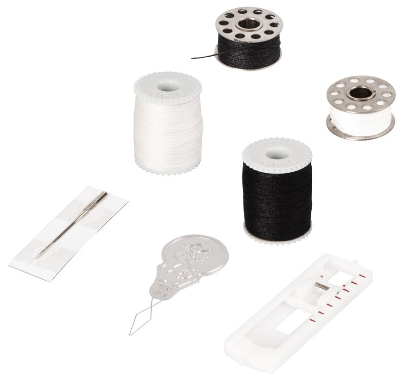 | Комплект поставки | документация; шпульки; лапка для обметки петель; ножной привод; сетевой блок питания; нитевдеватель; игла; лапка для подрубки; лапка для пришивания пуговиц |