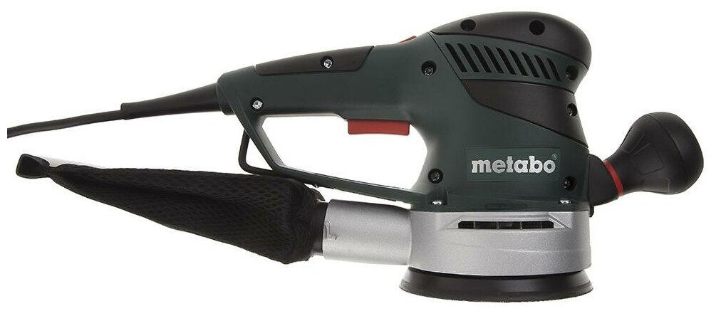 Эксцентриковая шлифмашинка Metabo SXE 425 TurboTec получила продуманную и совершенную эргономику. В зоне возле рукоятки расположена нескользящая накладка. Она улучшает фиксацию ладоней, владелец будет прочно удерживать инструмент и получает над ним полный контроль.
