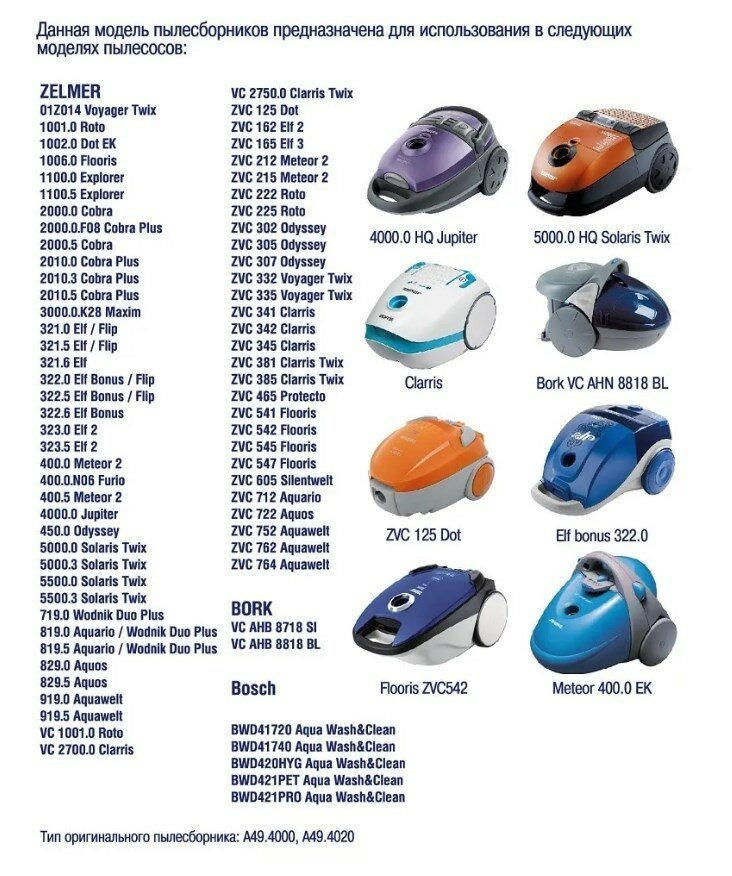 | Совместимые модели пылесосов | Zelmer Elf 2, ZVC 162, ZVC 165 Elf 3, Voyager Twix, ZVC 545 Flooris, ZVC 752, ZVC 722,ZVC 712 |
