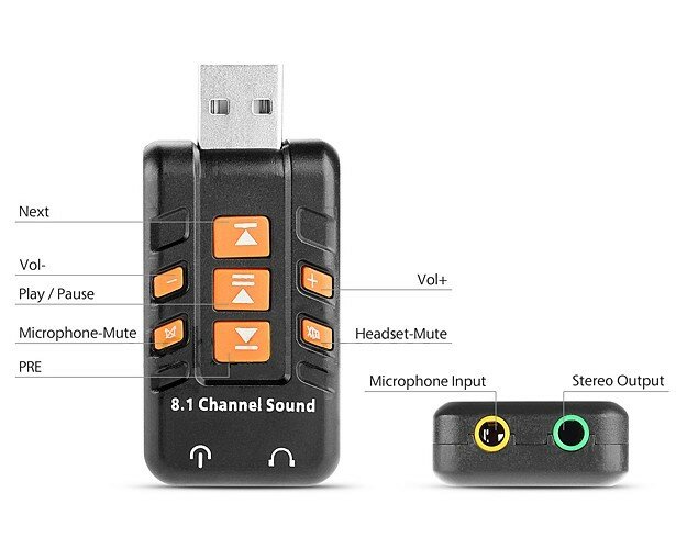 Покупалась из-за фоновых помех в микрофоне вызванных плохим заземлением розеток, проблема пропала, качество звука хорошее (конечно нужно понимать что это дешевая USB карта) ,доп клавиши бесполезны,качество портов не вызывает чувства надежности (это касается всех моделей до 30$) ,сочетание