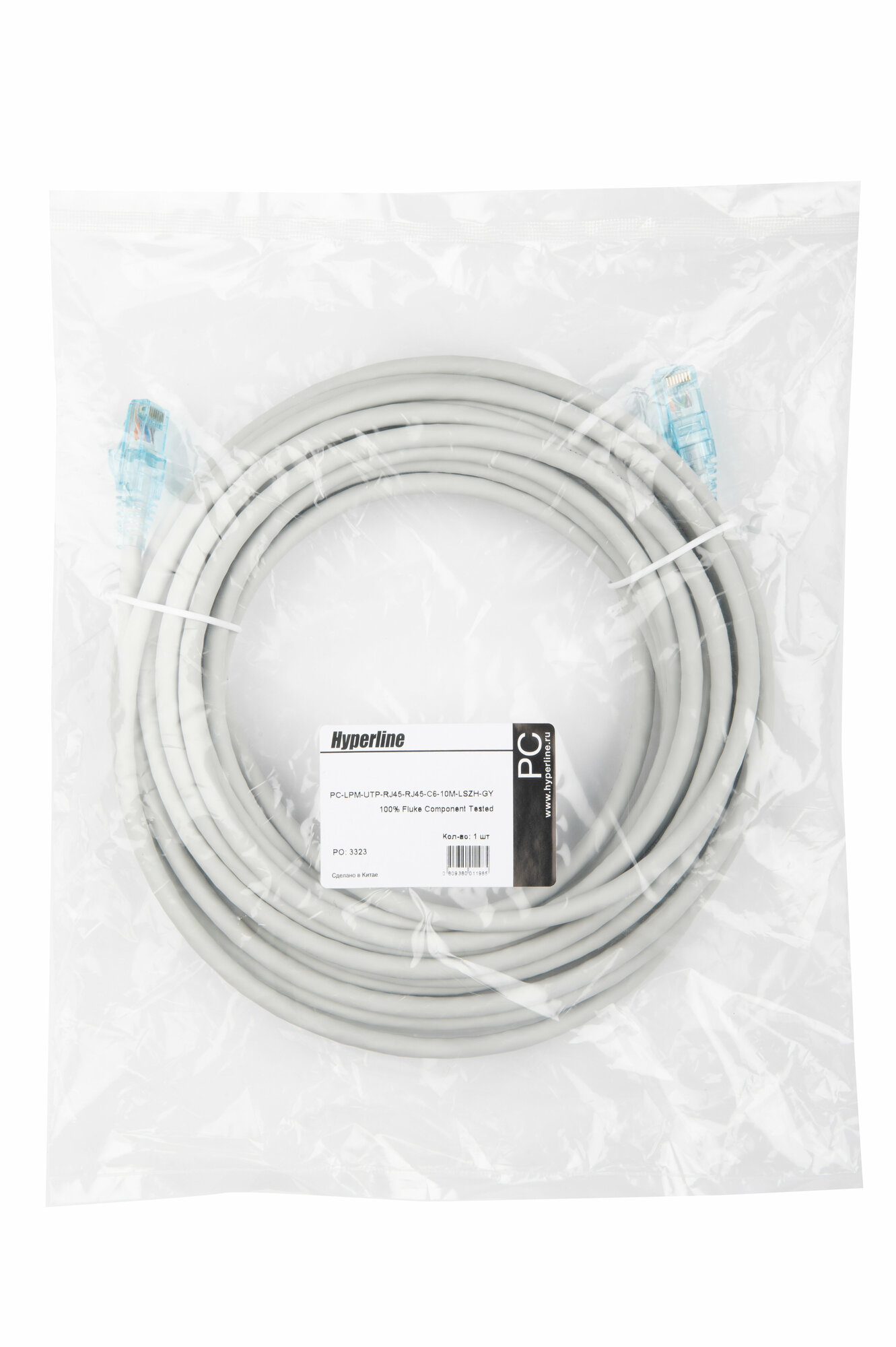 Патч-корд Hyperline сетевой кабель витой Ethernet Lan для интернета категория 6 U/UTP 100% Fluke LSZH 10 м серый PC-LPM-UTP-RJ45-RJ45-C6-10M-LSZH-GY