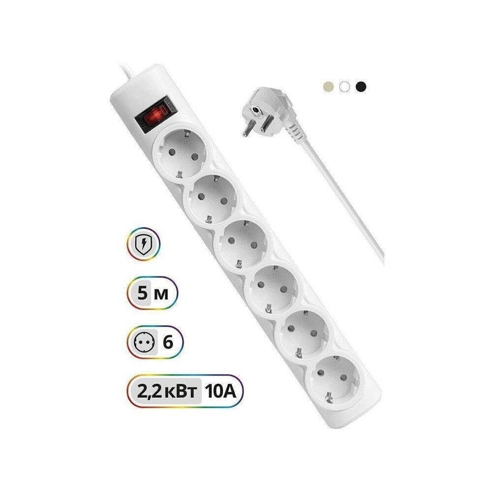 Сетевой фильтр Defender 6-розеток 5 м белый (99493) DFS 155