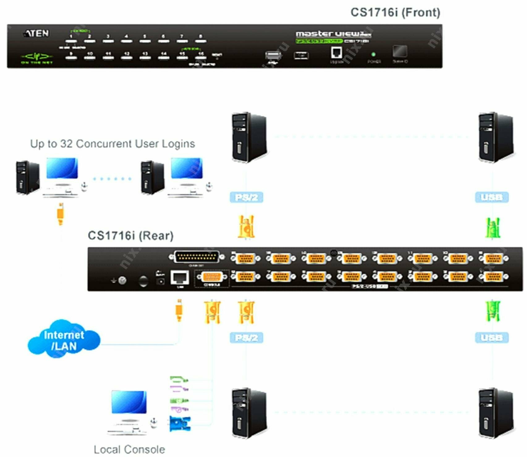 | Прочие особенности и свойства | Особенности:16 портовый KVM-переключатель удаленного доступа позволяет управлять 16 компьютерами с одной KVM консоли. Шлейфовое подключение до 15 дополнительных переключателей позволяет управлять 256 компьютерами с одной консоли. * Автоматическое определение позиции переключателя в цепочке шлейфового подключения; светодиод лицевой панели указывает позиционный номер переключателя. “Горячее” подключение позволяет добавлять или удалять компьютеры без отключения питания переключателя. Многоплатформная поддержка - Windows, Linux, Mac, и SUN. Концентратор USB на лицевой панели позволяет подключенным компьютерам обращаться к периферийным USB устройствам . Поддержка PS/2 и USB интерфейсов клавиатуры и мыши с автоматическим определением интерфейса. Эмуляция PS/2 и USB клавиатуры и мыши - компьютеры загружаются, даже когда консоль KVM переключателя подключена к другому компьютеру. Поддержка USB мультимедиа клавиатуры (PC, Mac и Sun). Разрешение до 2048 x 1536; DDC2B для локальной консоли; до 1600 x 1200 @ 60Hz с глубиной цветности 24 бит для удаленной консоли. Режим Video DynaSync™ - переключатель считывает и запоминает EDID (Extended Display Identification Data) монитора для дальнейшей передачи на подключенные компьютеры. Устанавливается в стойку 19” (1U). |