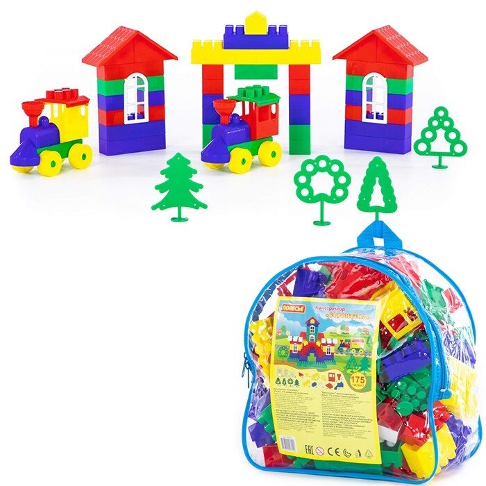 Конструктор Строитель бренда Полесье - любимая игра будущих архитекторов и строителей, изобретателей и проектировщиков. Детки в игровой форме учатся придумывать схемы сборки, моделировать роботов и технику, фантазируют и мечтают об интересных строительных проектах. Конструктор для малышей представлен в данной карточке в ассортименте количеством разноцветных пластиковых элементов, который поможет мальчикам и девочкам вместе с друзьями построить собственный яркий красочный город, а детская фантазия подскажет, как наполнить городок транспортом, фигурками человечков и животных и обустроить для игрушечной жизни. В наборе кубики - большие и маленькие с прочными креплениями, которые надежно сцепляются между собой. Детям несложно будет построить крепость и царский дворец, дом или грузовик, собрать мебель для кукольного домика или смастерить динозавра. Детский развивающий 3д набор это не банальная игрушка, а творческое занятие, которое обучает конструировать и размышлять, развивает мелкую моторику и внимание к мелочам. Конструктор большой позволит выстроить красивую башню и подъемный кран, смоделировать самолет или пожарную машину. Ребенок будет очень рад получить в подарок такую замечательную игрушку для девочек и мальчиков, а сборка моделей совместно с родителями доставит огромное удовольствие и малышу, и взрослым. Фигурки средней формы складываются в не очень сложные игрушечные конструкции, а после они не будут разбросаны по комнате, так как собираются в плотный прозрачный рюкзачок, который малыш может носить за плечами. Также приглашаем Вас посмотреть все детские наборы и игрушки нашего магазина тутси – для этого просто щелкните на логотип.