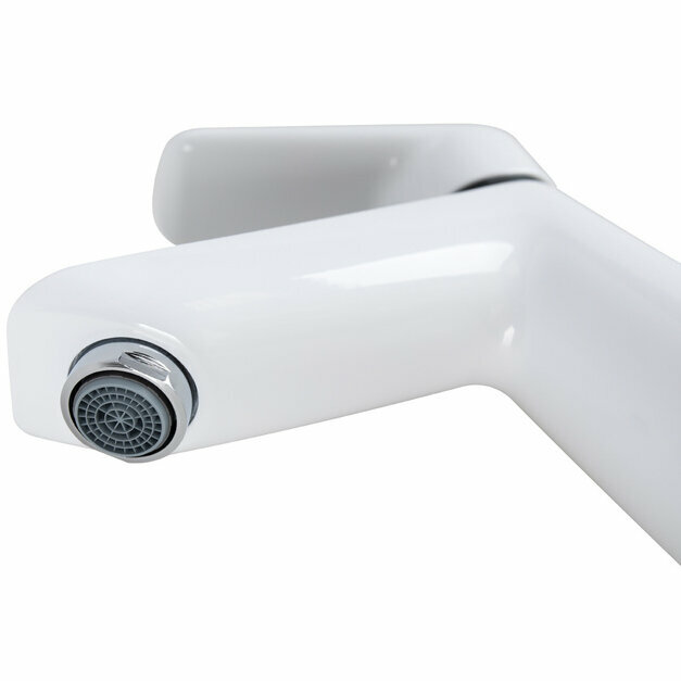 Смеситель для умывальника, однозахватный, латунь, увеличенное никель-хромовое покрытие, цвет - белый/хром, керамический картридж Softap 35 мм, силиконовый аэратор Neoperl. В комплекте: гибкая подводка, крепёж. Упаковка: коробка, микрогофрокартон, индивид. Мешок.