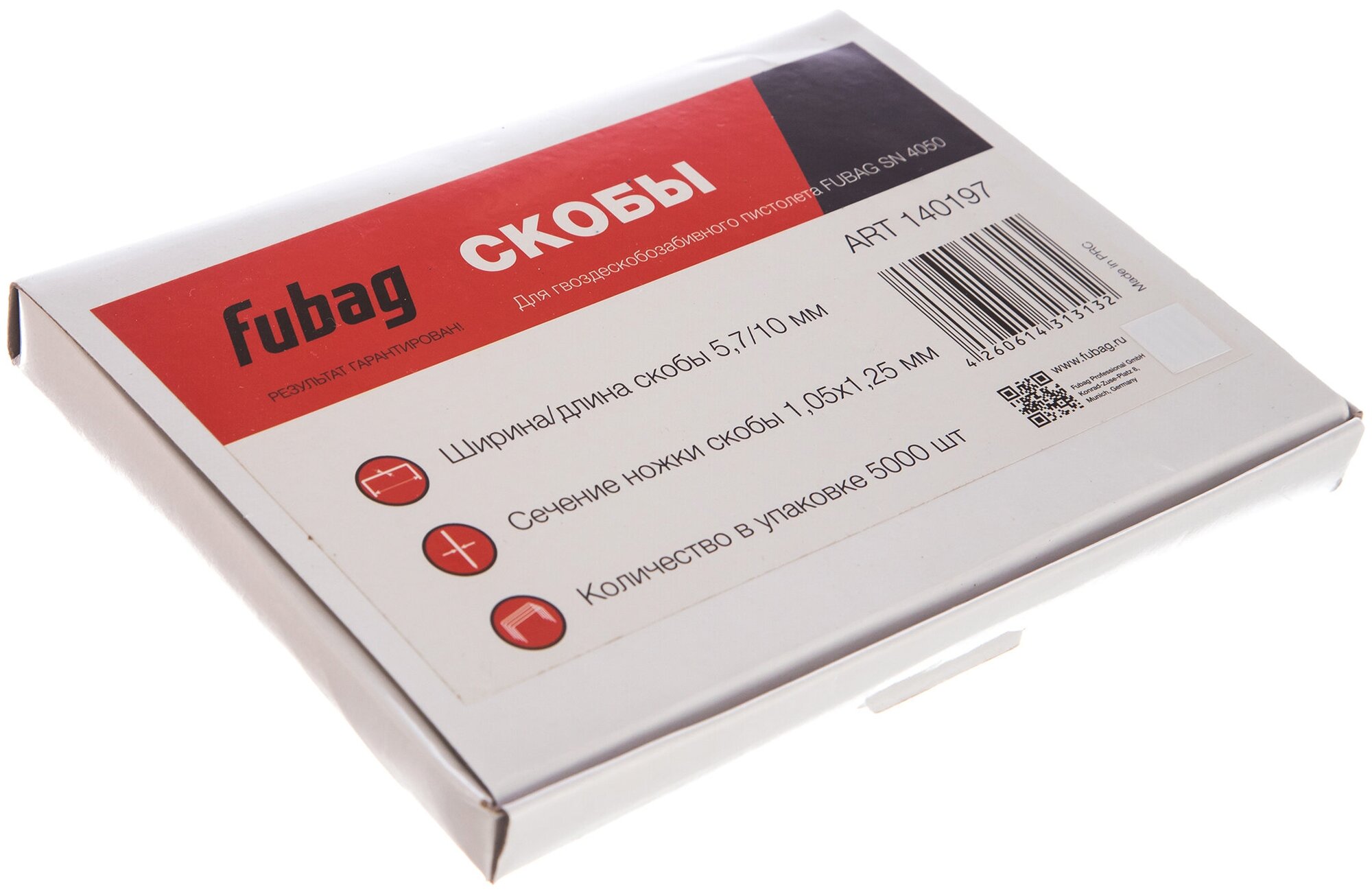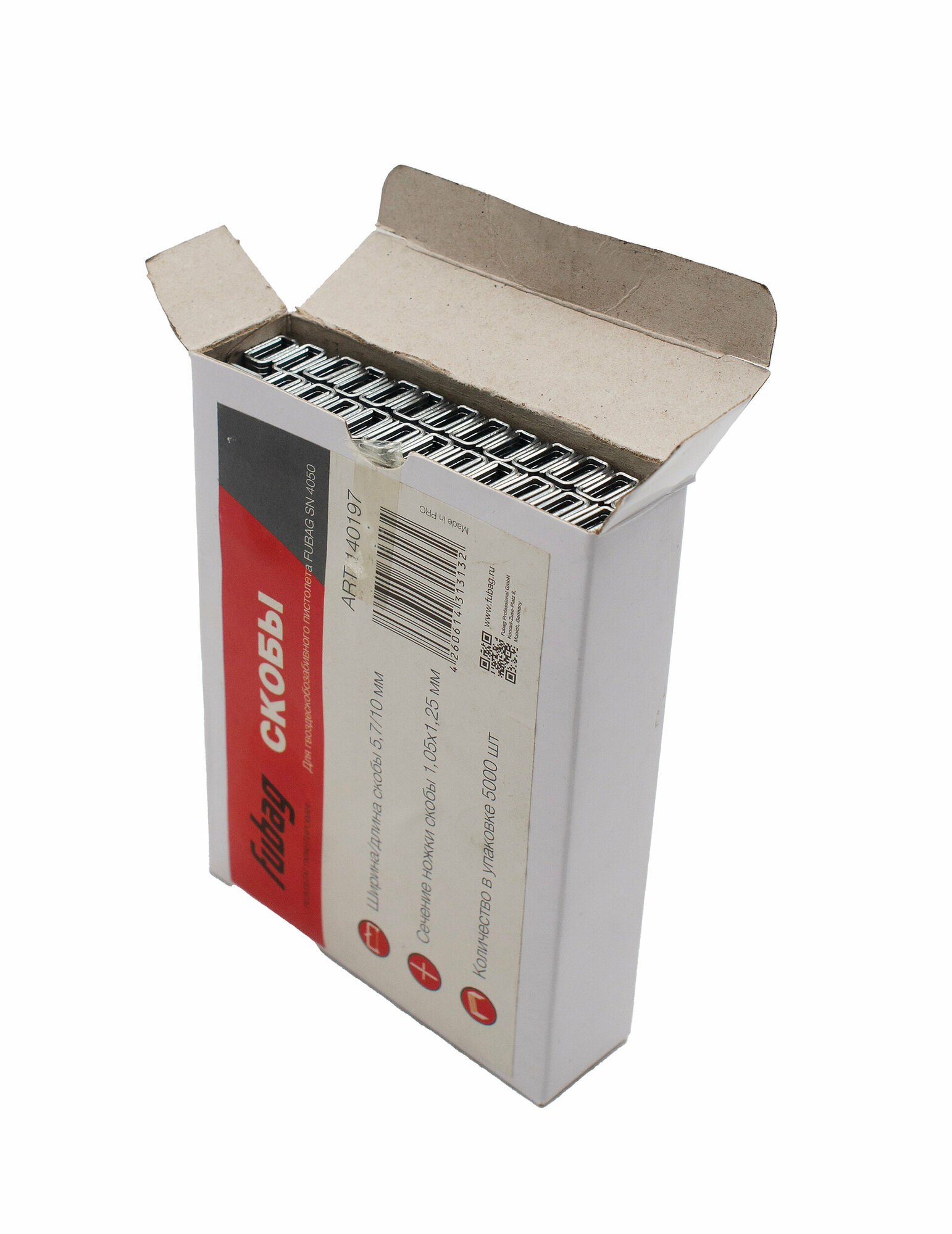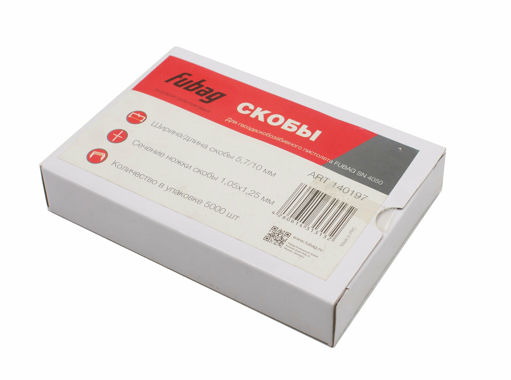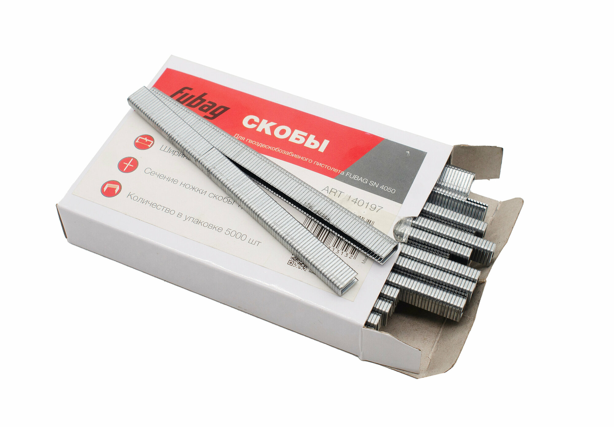 Скобы Fubag предназначены для использования с гвоздескобозабивным пистолетом SN4050. Они имеют сечение ножки 1,05×1,25 мм и размеры 5,7×10 мм. В упаковке содержится 5000 штук.Преимущества: Изготовлены из высококачественной стали, что обеспечивает их прочность и долговечность Подходят для крепления деревянных и древесно-волокнистых панелей, а также для сборки мебельных каркасов и обивки Имеют узкую спинку, что позволяет им легко проникать в материал и обеспечивать надёжное крепление Поставляются в удобной упаковке, содержащей достаточное количество скоб для выполнения множества видов работ