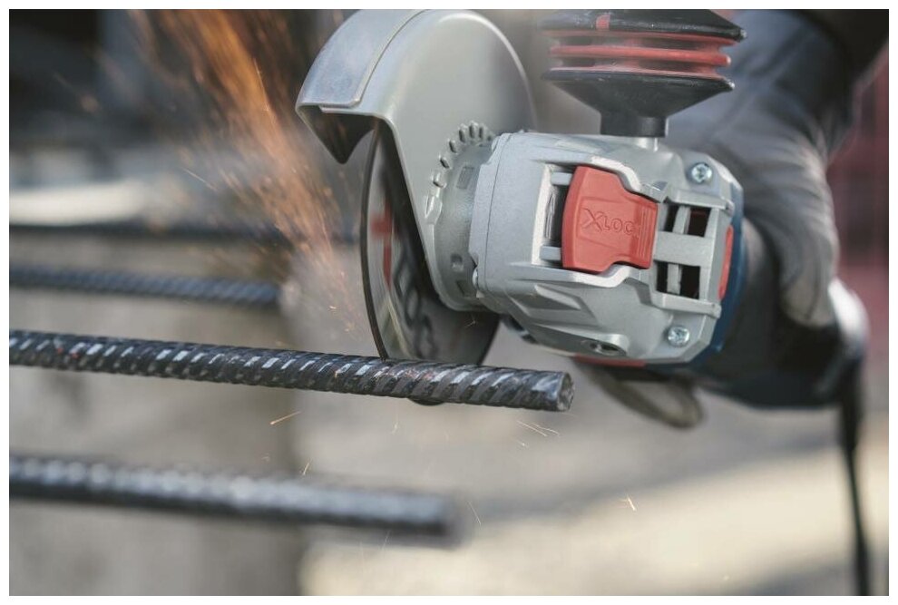 Оборудована инновационной системой крепления диска X-Lock – эта система позволяет снять диск, всего лишь подняв специальный зажим на корпусе. Одеть диск так же просто, нужно приложить круг к фиксатору и нажать до щелчка - и можно приступать к работе. Соответственно с данной болгаркой применяются отрезные и зачистные круги только серии X-Lock.
