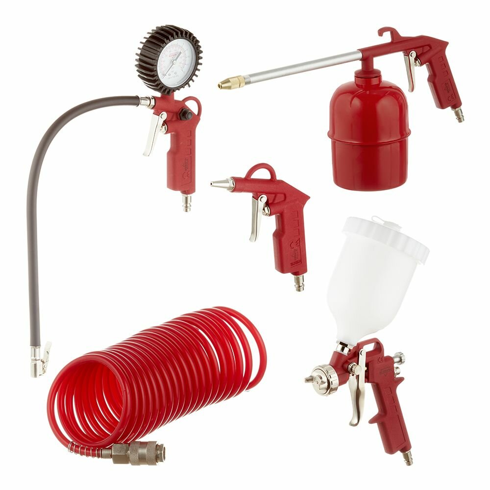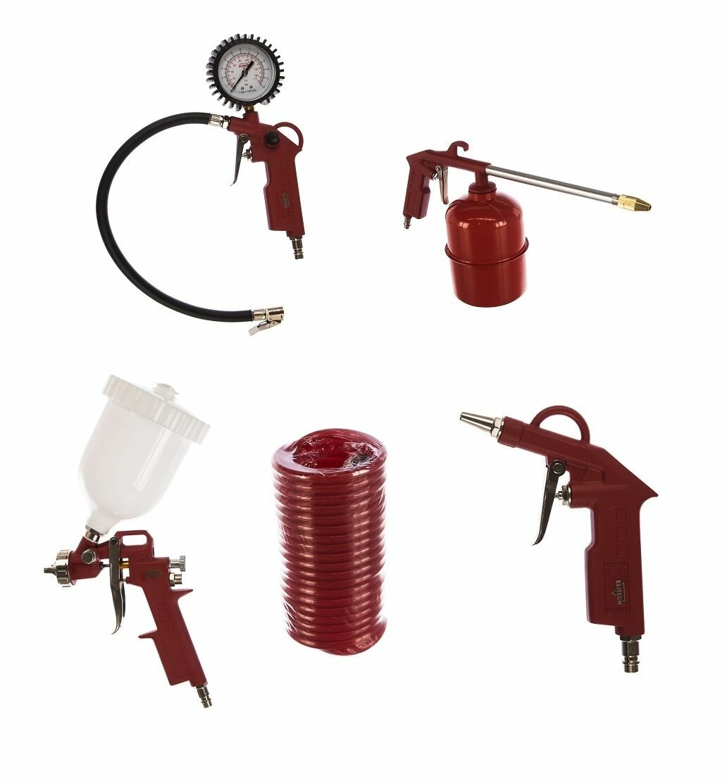 | Состав набора | пневмопистолет провдуочный, пневмопистолет мовильный, шланг спиральный, пнемопистолет для накачки шин, пневмокраскопульт |