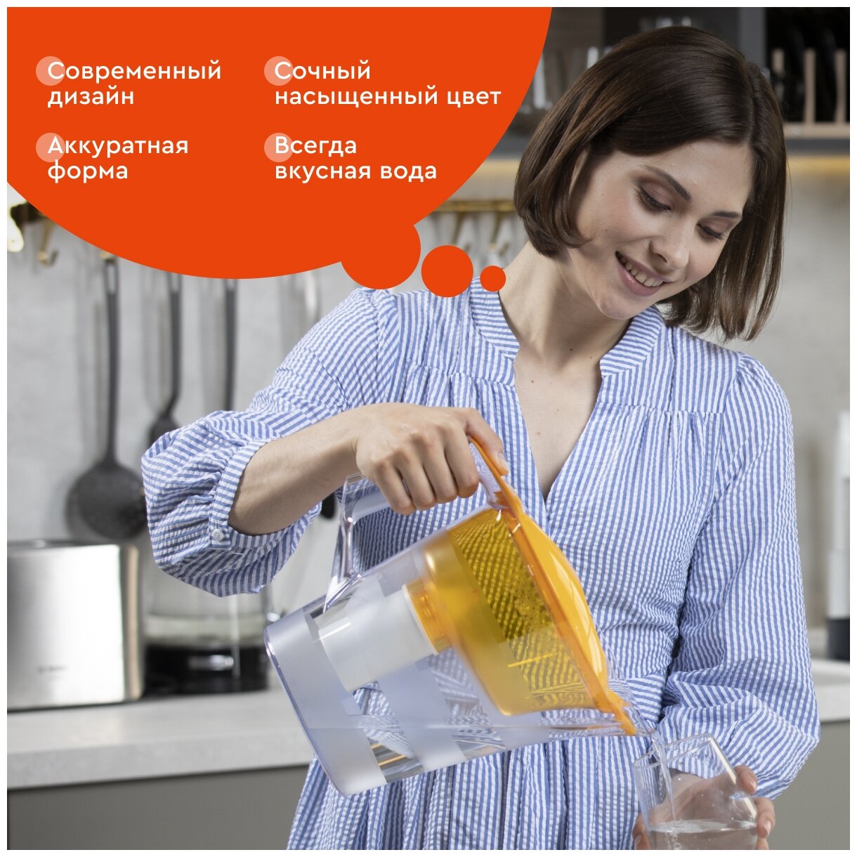| Прочие особенности и свойства | Объём кувшина 4 л, Возможность размещения в дверце холодильника нет, Объём очищенной воды 1,6 л, Наличие и тип индикатора ресурса Электронный, Объём фильтра-кувшина большой, Цвет сочный апельсин, Объём воронки 1,4 л |