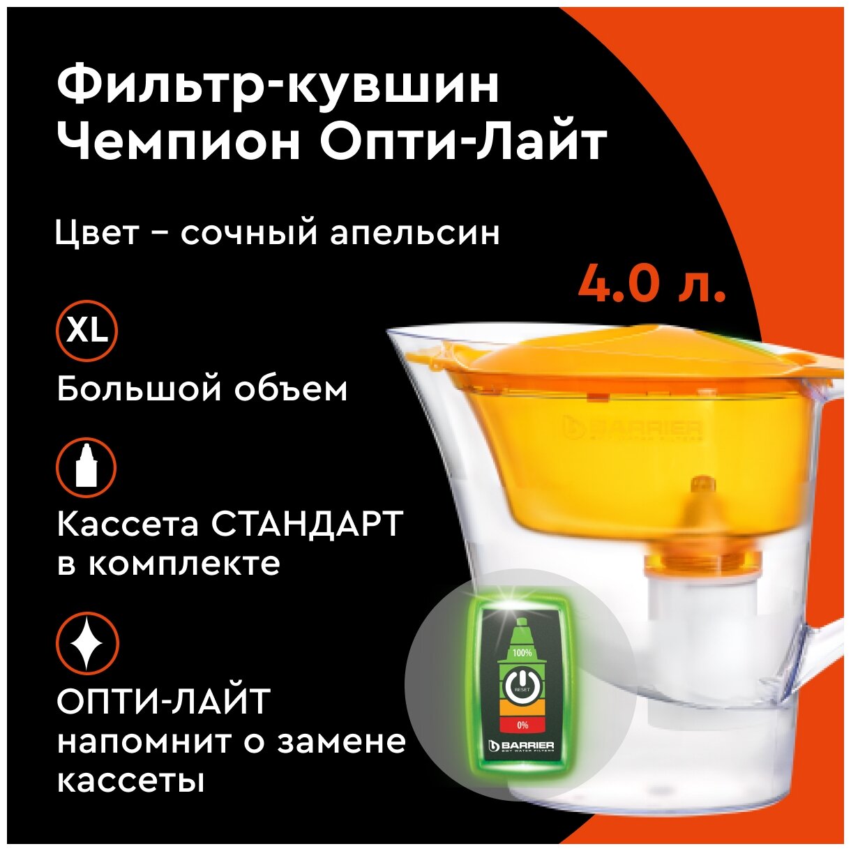 Фильтр-кувшин БАРЬЕР ЧЕМПИОН Сочный апельсин Опти-Лайт (В654Р00)